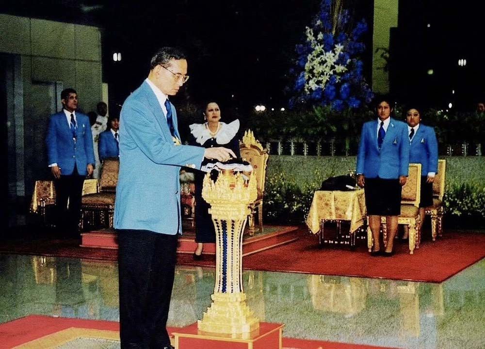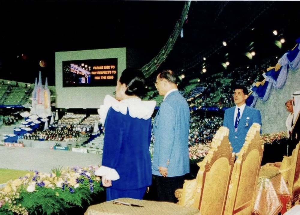 วันนี้ในอดีต (๖ ธันวาคม ๒๕๔๑) พระบาทสมเด็จพระบรมชนกาธิเบศร มหาภูมิพลอดุลยเดชมหาราช บรมนาถบพิตร รัชกาลที่ ๙ สมเด็จพระนางเจ้าสิริกิติ์ พระบรมราชินีนาถ พระบรมราชชนนีพันปีหลวง พระบาทสมเด็จพระปรเมนทรรามาธิบดีศรีสินทรมหาวชิราลงกรณ พระวชิรเกล้าเจ้าอยู่หัว รัชกาลที่ ๑๐ เสด็จพระราชดำเนินพร้อมด้วยพระบรมวงศานุวงศ์ ในพิธีเปิด กีฬาเอเชียนเกมส์ ครั้งที่ ๑๓ ณ ราชมังคลากีฬาสถาน