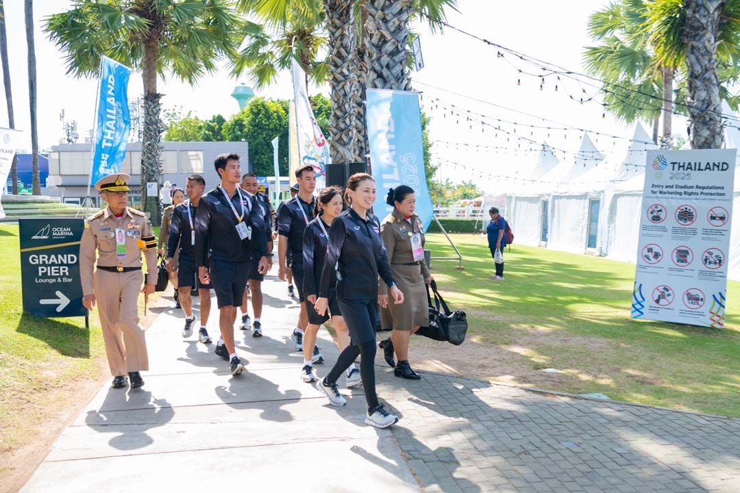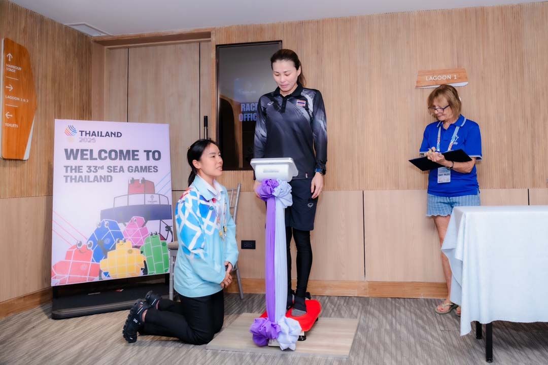 เมื่อเวลา 10.32 น.วันที่ 14 ธันวาคม 2568 สมเด็จพระนางเจ้าฯ พระบรมราชินี เสด็จพระราชดำเนินไปยังโรงแรม Ocean Marina Pattaya อ.สัตหีบ จ.ชลบุรี เพื่อทรงลงทะเบียน และชั่งน้ำหนักนักกีฬา เรือใบทีมชาติไทย ประเภทเรือคีลโบท SSL 47 พร้อมทรงฟังการถวายบรรยายข้อมูลการแข่งเรือใบ และทรงฝึกซ้อมเรือใบ รอบทดสอบสนาม ในการแข่งขันกีฬาซีเกมส์ ครั้งที่ 33 ร่วมกับนักกีฬาจาก 4 ชาติ ได้แก่ เวียดนาม ฟิลิปปินส์ มาเลเซีย และเมียนมา โดยมี พลเรือเอก สมประสงค์ นิลสมัย นายกสมาคมกีฬาแข่งเรือใบแห่งประเทศไทย ในพระบรมราชูปถัมภ์ และประชาชน เฝ้าฯ รับเสด็จ