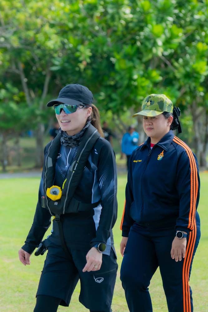 จากนั้น สมเด็จพระนางเจ้าฯ พระบรมราชินี เสด็จฯ โดยเรือใบ SSL 47 หมายเลข 6 ไปยังบริเวณพื้นที่ฝึกข้อมในทะเล ทรงฝึกซ้อม Official practice race หรือ รอบทดสอบสนาม ร่วมกับนักกีฬาอีกจาก 4 ชาติ ได้แก่ เวียดนาม ฟิลิปปินส์ มาเลเซีย และเมียนมา อันเป็นการเตรียมความพร้อมของนักกีฬา และคณะกรรมการ ให้มีความคุ้นเคยกับสนาม ก่อนการแข่งขันจริง ซึ่งจะมีขึ้นระหว่างวันที่ 15 - 18 ธ.ค.