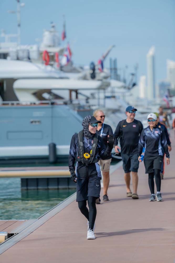 การนี้เสด็จฯ ไปยังห้องรายงานตัวนักกีฬา ทรงลงทะเบียน ชั่งน้ำหนักนักกีฬา และทรงฉายพระรูปร่วมกับนักกีฬาเรือใบทีมชาติไทย ก่อนเสด็จฯ ไปยังท่าเรือ Ocean Marina Yacht Club Paltaya เพื่อทรงร่วมร้องเพลงชาติไทย กับทีมนักกีฬาเรือใบ บนเรือ SSL 47 และทรงรับฟังการถวายบรรยายข้อมูลการแข่งเรือใบ