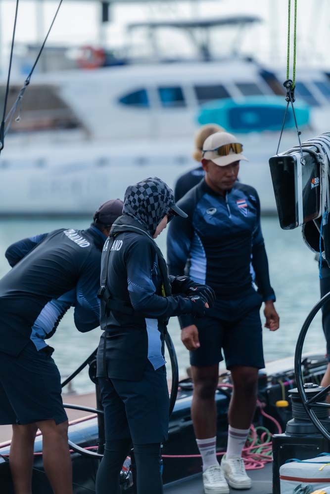 ในการฝึกซ้อมครั้งนี้ สมเด็จพระนางเจ้าฯ พระบรมราชินี ทรงลงเรือประเภทคีลโบท SSL 47 ซึ่งเป็นเรือใบขนาดใหญ่มีความยาว 47 ฟุต ซึ่งในเรือมีจำนวนนักกีฬาจำนวน 8 - 10 คน น้ำหนักนักกีฬารวมกันไม่เกิน 730 กิโลกรัม และต้องมีนักกีฬาต่างเพศอยู่บนเรืออย่างน้อย 2 คน ซึ่งเป็นชนิดกีฬาที่ถูกบรรจุเพิ่มใหม่ในซีเกมส์ปีนี้ โดยการแข่งขันในคลาสดังกล่าวนักกีฬาต้องอาศัยทักษะขั้นสูง ทั้งความแข็งแรง ความแม่นยำ และการทำงานสอดประสานของทีม เพื่อรับมือกับสภาพลมและคลื่นที่เปลี่ยนแปลงรวดเร็ว