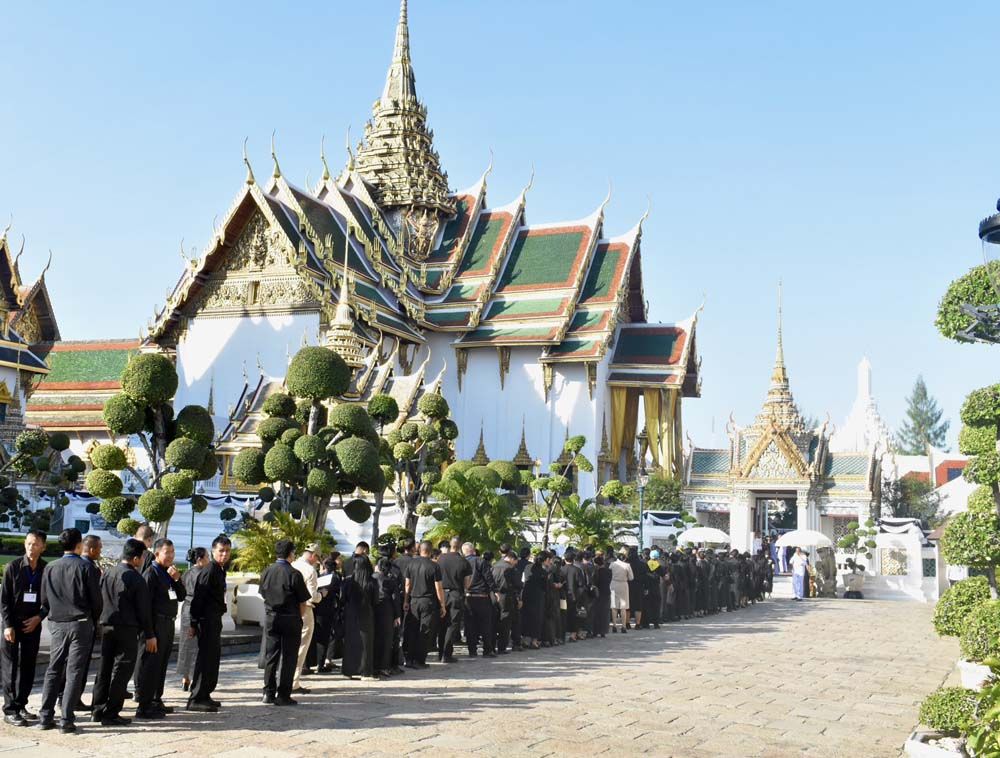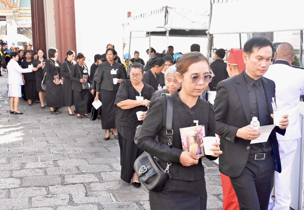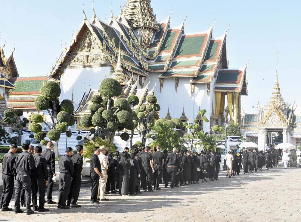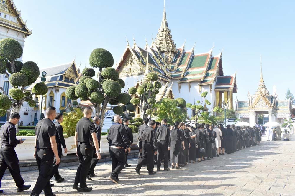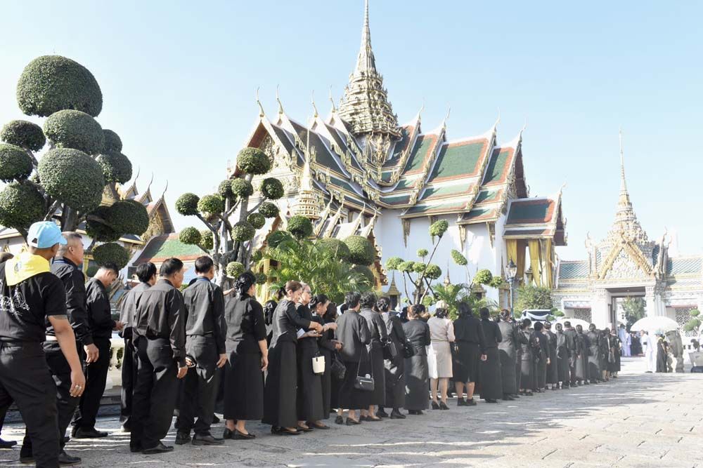 โดยตลอดวันนี้ ได้มีประชาชนจากทั้งในกรุงเทพฯและหลายจังหวัดพร้อมใจแต่งกายด้วยชุดสุภาพสีดำไว้ทุกข์เดินทางผ่านจุดคัดกรองที่ท้องสนามหลวง และเข้าพักยังจุดพักคอยที่อุโมงค์ถนนหน้าพระลาน ผ่านประตูมณีนพรัตน์ เข้ากราบถวายบังคมพระบรมศพ ณ พระที่นั่งดุสิตมหาปราสาท ในพระบรมมหาราชวัง อย่างพร้อมเพรียง