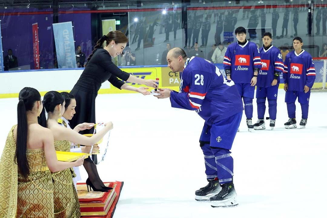 สมเด็จพระนางเจ้าฯ พระบรมราชินี ทรงให้ความสำคัญและสนพระราชหฤทัยกีฬาฮอกกี้น้ำแข็ง โดยเคยทรงร่วมการแข่งขันไอซ์ ฮอกกี้ คู่เปิดสนาม ในโอกาสที่พระบาทสมเด็จพระเจ้าอยู่หัว และสมเด็จพระนางเจ้าฯ พระบรมราชินี เสด็จพระราชดำเนินไปทรงเปิด “ไทยแลนด์ อินเตอร์เนชันแนล ไอซ์ ฮอกกี้ อารีนา เชียงใหม่” (Thailand International Ice Hockey Arena Chiangmai) อำเภอเมืองเชียงใหม่ จังหวัดเชียงใหม่ เมื่อวันที่ 20 ตุลาคม 2566 และการแข่งขันฮอกกี้น้ำแข็งกระชับมิตรระหว่างสาธารณรัฐประชาชนจีน และราชอาณาจักรไทย เนื่องในโอกาสพระราชพิธีมหามงคลเฉลิมพระชนมพรรษา 6 รอบ 28 กรกฎาคม 2567 และในโอกาสครบ 75 ปีแห่งการสถาปนาสาธารณรัฐประชาชนจีน ณ สนามฮอกกี้น้ำแข็ง “ไทยแลนด์ อินเตอร์เนชันแนล ไอซ์ ฮอกกี้ อารีนา” (Thailand International Ice Hockey Arena) เขตห้วยขวาง กรุงเทพมหานคร เมื่อวันที่ 6 ตุลาคม 2568 และนับเป็นพระมหากรุณาธิคุณอย่างยิ่งที่สมเด็จพระนางเจ้าฯ พระบรมราชินี ได้เสด็จพระราชดำเนินมาทอดพระเนตรการแข่งขันฮอกกี้น้ำแข็งในครั้งนี้ ซึ่งจะเป็นการส่งเสริมให้เยาวชนได้สนใจกีฬาฮอกกี้น้ำแข็ง ทั้งยังได้ฝึกฝนพัฒนาทักษะของนักกีฬาฮอกกี้น้ำแข็งของไทยให้ก้าวไปสู่การแข่งขันในระดับประเทศ และระดับนานาชาติ
