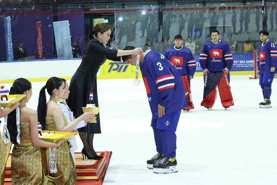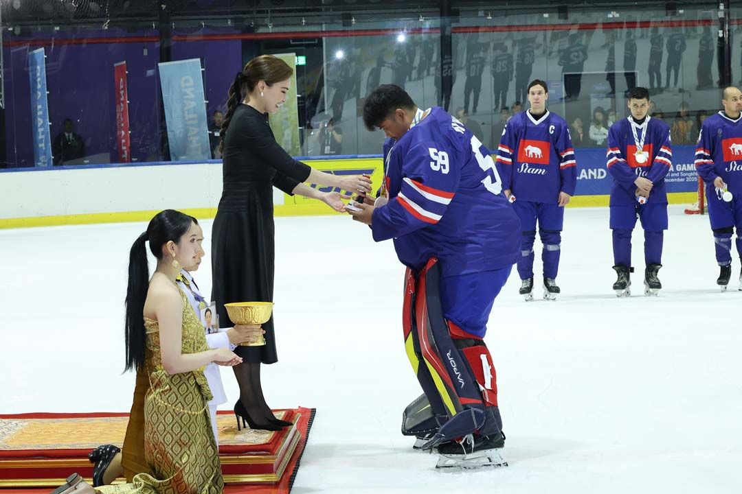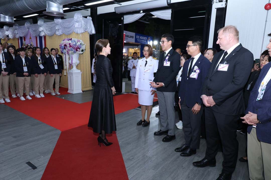 เมื่อเวลา 17.50 น.วันที่ 19 ธันวาคม 2568 สมเด็จพระนางเจ้าฯ พระบรมราชินี เสด็จพระราชดำเนินไปทอดพระเนตรการแข่งขันกีฬาฮอกกี้น้ำแข็ง รอบชิงชนะเลิศ ประเภททีมชาย ระหว่างทีมประเทศไทย และทีมสาธารณรัฐอินโดนีเซีย โดยการแข่งขันแบ่งออกเป็น 3 พีเรียด (Period) พีเรียดละ 20 นาที จบการแข่งขัน 3 พีเรียด สาธารณรัฐอินโดนีเซีย ชนะประเทศไทย 3 ประตูต่อ 2