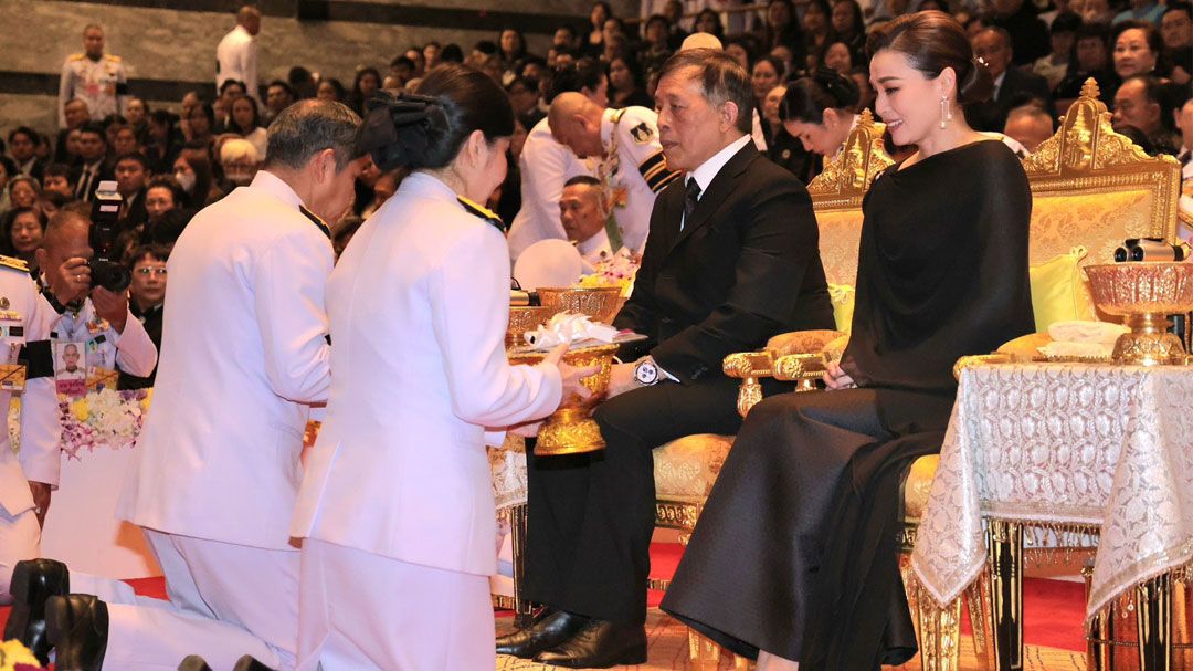 ถวายหนังสือที่ระลึก แด่พระบาทสมเด็จพระเจ้าอยู่หัว ผู้ช่วยศาสตราจารย์บัวรอง ลิ่วเฉลิมวงศ์ เข้าเฝ้า ฯ ทูลเกล้า ฯ ถวายของที่ระลึกแด่สมเด็จพระนางเจ้า ฯ พระบรมราชินี และ นางเบญจวรรณ สร่างนิทร ประธานคณะกรรมการอำนวยการจัดการแสดง และกรรมการมูลนิธิสมาคมสตรีอุดมศึกษา แห่งประเทศไทย ในพระอุปถัมภ์ของ สมเด็จพระเจ้าพี่นางเธอ เจ้าฟ้ากัลยาณิวัฒนา กรมหลวงนราธิวาสราชนครินทร์ กราบบังคมทูลรายงานวัตถุประสงค์ของการจัดงาน ฯ พร้อมทั้งกราบบังคมทูลเชิญ พระเนตรการแสดงรำถวายอาลัย สมเด็จพระนางเจ้าสิริกิติ์ พระบรมราชินีนาถ พระบรมราชชนนีพันปีหลวง "ยี่สิบสี่ตุลา มหาวิปโยค" รำถวายพระพร และการแสดงละครเสภา เรื่อง "ขุนช้าง - ขุนแผน" ตอน พลายชุมพล ตามลำดับ