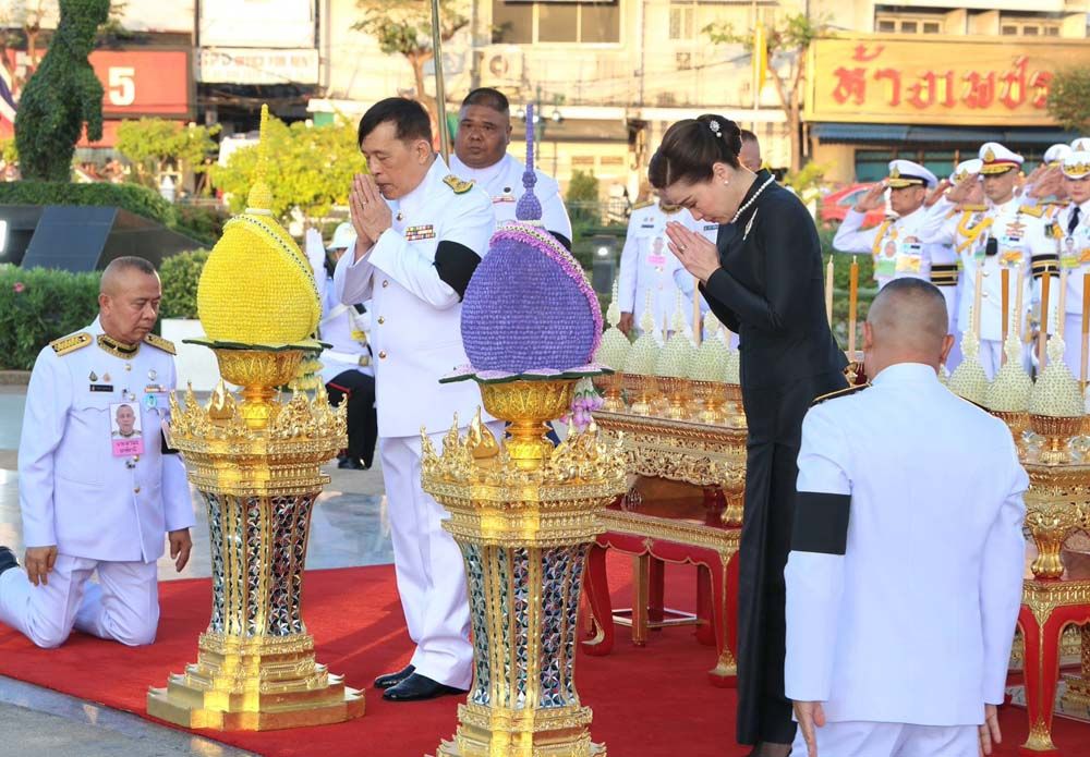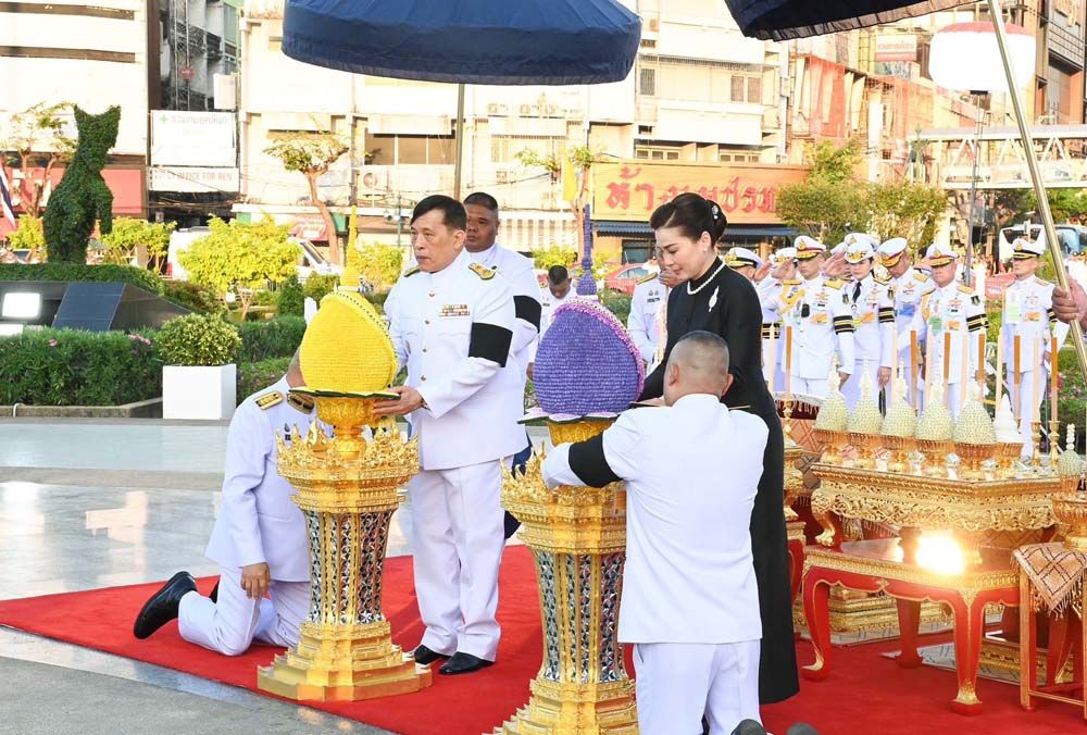 การนี้ พระบาทสมเด็จพระเจ้าอยู่หัว สมเด็จพระนางเจ้าฯพระบรมราชินี ทรงวางพุ่มดอกไม้ และทรงจุดธูปเทียนเครื่องราชสักการะ ถวายบังคมพระบรมรูปสมเด็จพระเจ้าตากสินมหาราช แล้ใเสด็จออกจากลานพระบรมราชานุสาวรีย์ ฯ ไปยังรถยนต์พระที่นั่ง เสด็จ ฯ ออกจากพระบรมราชานุสาวรีย์ สมเด็จพระเจ้าตากสินมหาราช วงเวียนใหญ่ ไปยังศาลาดุสิดาลัย สวนจิตรลดา