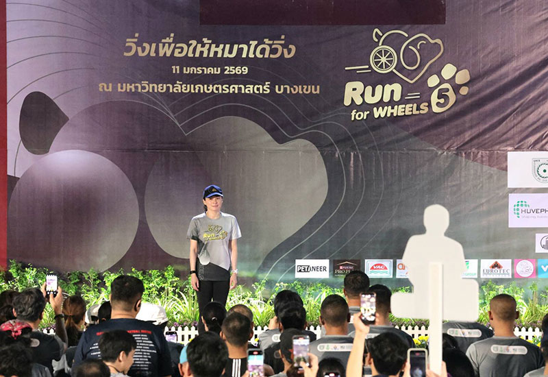 จากนั้น ทรงพระดำเนินไปยังจุด “สตาร์ท” (START) พระราชทานพระราชวโรกาสให้ นายดำรงค์ ศรีพระราม รักษาการแทนอธิการบดีมหาวิทยาลัยเกษตรศาสตร์ กราบบังคมทูลรายงานการจัดงานการแข่งขันวิ่ง โครงการ “รัน ฟอร์ วีลส์#5 (Run for Wheels#5) วิ่งเพื่อให้หมาได้วิ่ง ครั้งที่ 5 ” ซึ่งมีวัตถุประสงค์เพื่อนำเงินรายได้หลังหักค่าใช้จ่ายไปจัดทำวีลแชร์ให้แก่สัตว์พิการ และสนับสนุนจัดซื้อเครื่องมือทางการแพทย์ให้แก่คณะสัตวแพทยศาสตร์ มหาวิทยาลัยเกษตรศาสตร์ บางเขน
