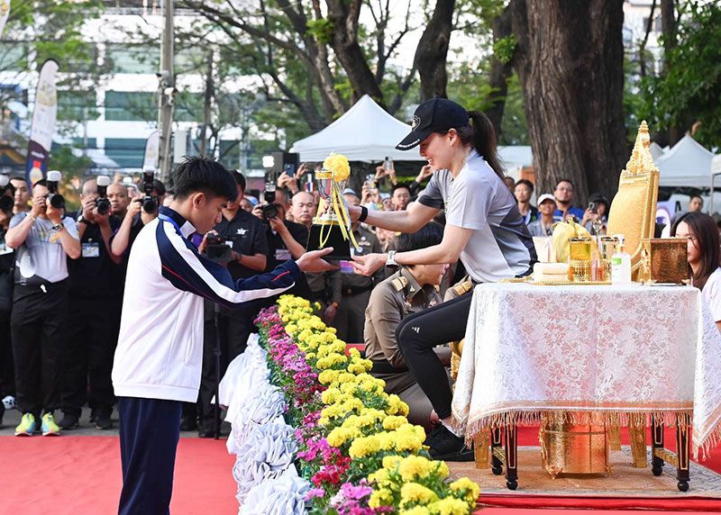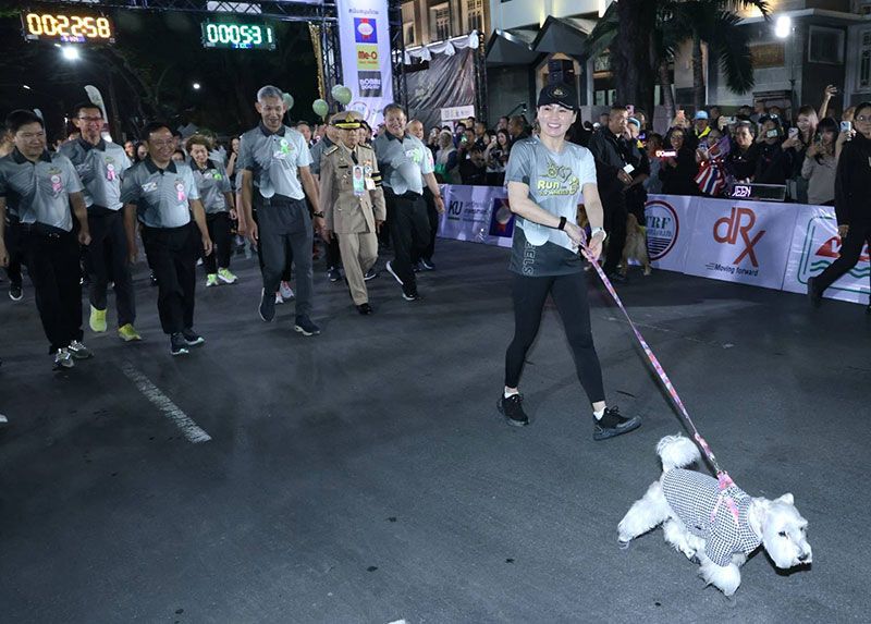 ต่อจากนั้น ทรงกดแตรสัญญาณปล่อยขบวนนักวิ่ง และนักวิ่งพร้อมสุนัข (ระยะทาง 10 กิโลเมตร) และทรงกดแตรสัญญาณปล่อยขบวนนักวิ่ง และนักวิ่งพร้อมสุนัข (ระยะทาง 3 กิโลเมตร)