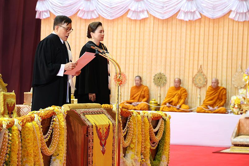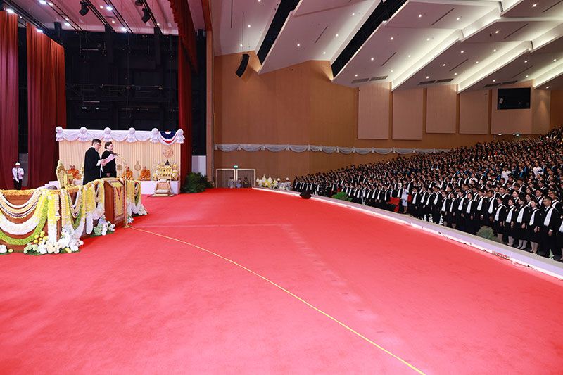ข้าพเจ้าขอมอบปริญญาบัตรให้แก่บัณฑิตของมหาวิทยาลัยแห่งนี้ ตั้งแต่บัดนี้เป็นต้นไป ขออำนวยพรให้ทุกท่านมีความสุข และความก้าวหน้ามั่นคงทุกประการ”