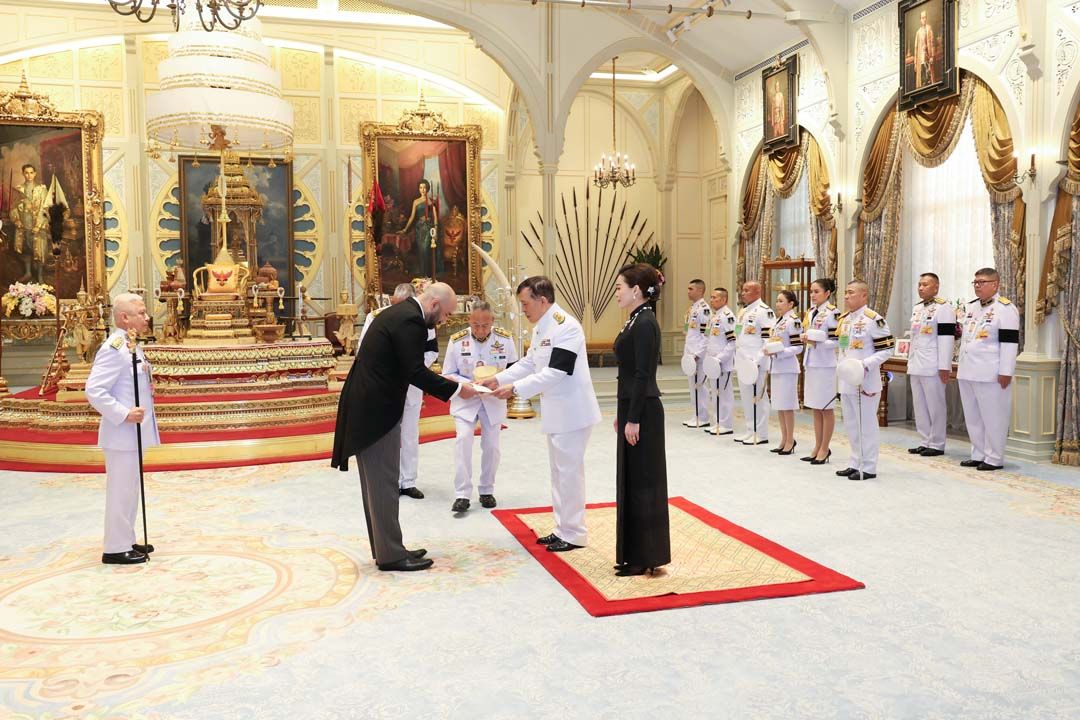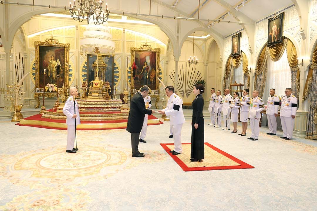 10 กุมภาพันธ์ 2569 เวลา 17.17 น.พระบาทสมเด็จพระเจ้าอยู่หัว และสมเด็จพระนางเจ้าฯ พระบรมราชินี เสด็จออก ณ พระที่นั่งอัมพรสถาน พระราชวังดุสิต พระราชทานพระบรมราชวโรกาสให้ เอกอัครราชทูตต่างประเทศประจำประเทศไทย เฝ้าทูลละอองธุลีพระบาท ถวายพระราชสาส์นตราตั้ง และอักษรสาส์นตราตั้ง ตามลำดับ ดังนี้