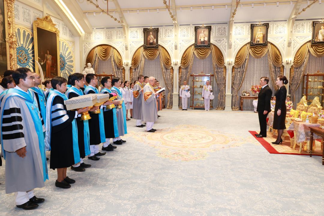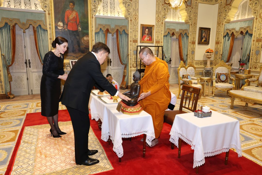 และพระพุทธรูปปางมารวิชัย ศิลปะอยุธยา เนื้อบุทองคำ ขนาดหน้าตัก 1.5 นิ้ว แด่พระบาทสมเด็จพระเจ้าอยู่หัว และถวายพระพุทธรูปปางมารวิชัย ศิลปะสุโขทัย ยุคคลาสสิค เนื้อโลหะลงรักปิดทอง ขนาดหน้าตัก 8 นิ้ว พระพุทธรูปปางเปิดโลก ศิลปะสุโขทัย เนื้อว่านบุทอง ความสูง 3.5 นิ้ว และพระพุทธรูปปางนาคปรก ศิลปะลพบุรี เนื้อชิน ความสูง 1.5 นิ้ว แด่สมเด็จพระนางเจ้าฯ พระบรมราชินี เนื่องในโอกาสขึ้นปีใหม่ พุทธศักราช 2569