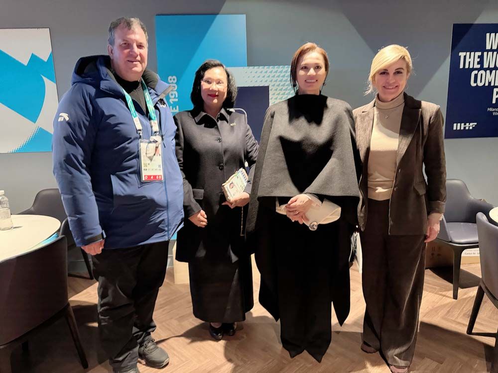 ทั้งนี้ สหพันธ์ฮอกกี้น้ำแข็งนานาชาติ (International Ice Hockey Federation) หรือ IIHF ก่อตั้งขึ้นเมื่อปี 2451 สำนักงานใหญ่ตั้งอยู่ ณ เมืองซูริก สมาพันธรัฐสวิส ทำหน้าที่กำกับดูแลมาตรฐานและการแข่งขันฮอกกี้น้ำแข็งทั่วโลก รวมถึงในมหกรรมการแข่งขันกีฬาโอลิมปิก ปัจจุบันมีสมาชิก 84 ประเทศ โดยประเทศไทยเป็นหนึ่งในประเทศสมาชิก การเสด็จพระราชดำเนินไปทอดพระเนตรการแข่งขันฮอกกี้น้ำแข็งรอบชิงเหรียญรางวัลต่าง ๆ ในมหกรรมการแข่งขันกีฬาโอลิมปิกฤดูหนาว 2026 ระหว่างการเสด็จพระราชดำเนินสาธารณรัฐอิตาลี ระหว่าง 18-23 กุมภาพันธ์ 2569 สะท้อนให้เห็นถึงพระวิสัยทัศน์ด้านกีฬาของสมเด็จพระนางเจ้า ฯ พระบรมราชินี ที่ทรงตระถึงความสำคัญของกีฬา ซึ่งเปรียบเสมือนภาษาสากลที่สามารถเชื่อมคนทุกเชื้อชาติเข้าด้วยกัน ทั้งยังเป็นการส่งเสริมบทบาทอันโดดเด่นของประเทศไทยในประชาคมกีฬาฤดูหนาว ในฐานะประเทศที่สนับสนุนกีฬาและความร่วมมือระหว่างประเทศ