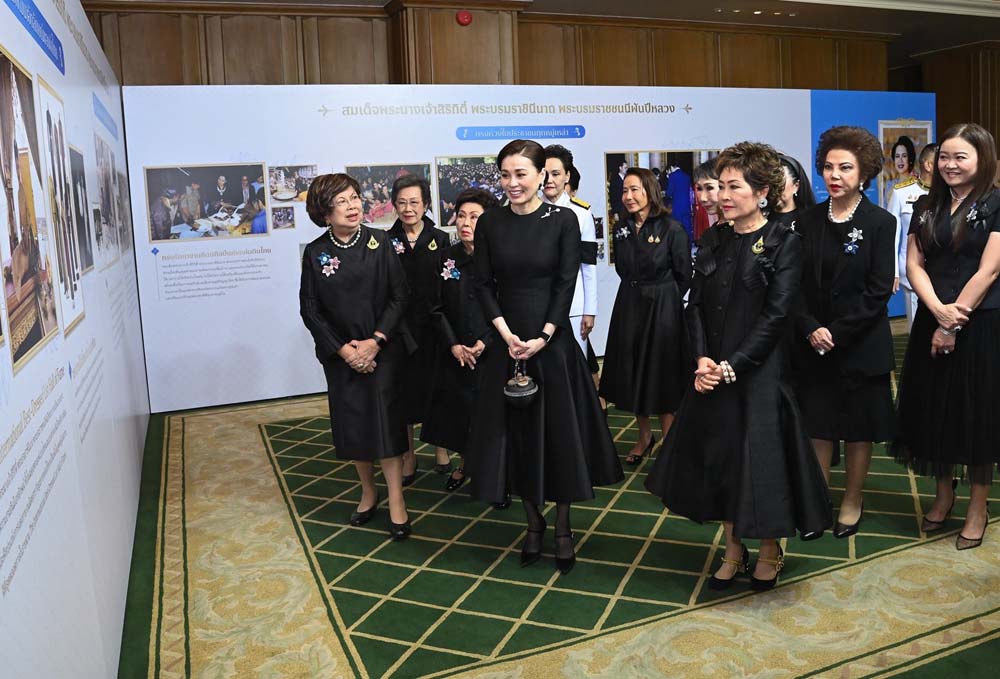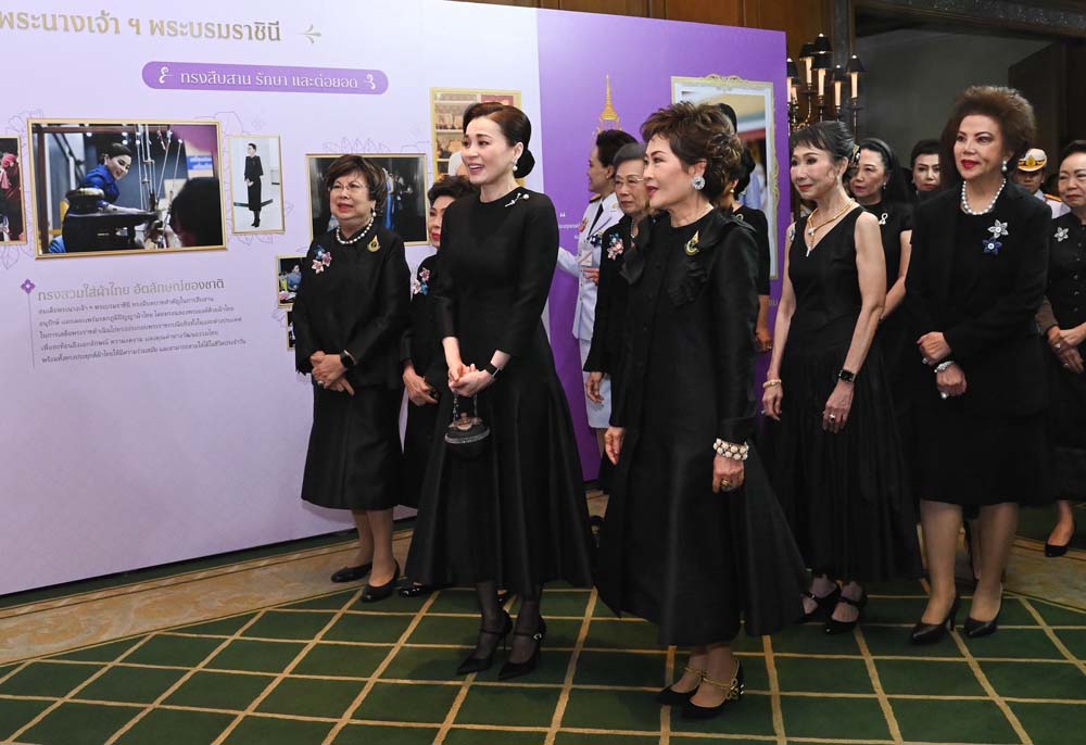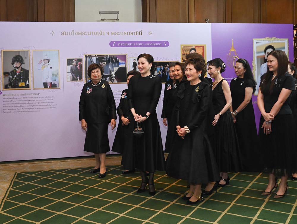 เมื่อเสด็จพระราชดำเนินถึง คุณหญิงณัฐิกา วัธนเวคิน อังอุบลกุล ประธานสหพันธ์สมาคมสตรีนักธุรกิจและวิชาชีพแห่งประเทศไทย ในพระบรมราชินูปถัมภ์ พร้อมด้วยคณะกรรมการจัดงาน ฯ เฝ้าทูลละอองธุลีพระบาทรับเสด็จ จากนั้น เสด็จพระราชดำเนินไปยังโถงหน้าห้องจัดงาน ฯ ทอดพระเนตรนิทรรศการน้อมรำลึกถึงพระมหากรุณาธิคุณสมเด็จพระนางเจ้าสิริกิติ์ พระบรมราชินีนาถ พระบรมราชชนนีพันปีหลวง จัดแสดงพระราชกรณียกิจที่ทรงช่วยเหลือราษฎรทุกหมู่เหล่าโดยไม่แบ่งแยก ทรงฟื้นฟูศิลปวัฒนธรรม อันเป็นมรดกของชาติ ทรงพัฒนาคุณภาพชีวิตของราษฎรให้ดีขึ้น ทรงเป็นแบบอย่างของสตรีไทย ด้วยฉลองพระองค์ทั้งแบบไทยและแบบสากลสู่สายตาชาวโลก ด้วยพระราชกรณียกิจนานัปการเป็นที่ประจักษ์ชัด ทำให้หน่วยงานต่าง ๆทั่วโลกต่างแซ่ซ้องสรรเสริญ และได้ทูลเกล้าทูลกระหม่อมถวายรางวัลเป็นจำนวนมาก และนิทรรศการเฉลิมพระเกียรติ สมเด็จพระนางเจ้า ฯพระบรมราชินี จัดแสดงพระราชกรณียกิจและพระปรีชาสามารถในด้านต่าง ๆ อาทิ ด้านการทหาร ด้านการบิน ด้านกีฬา ทั้งยังทรงให้ความสำคัญการพัฒนาสตรีไทย เพื่อยกระดับคุณภาพชีวิตของสตรีและเด็กอย่างต่อเนื่อง ทรงอนุรักษ์และเผยแพร่อัตลักษณ์ของชาติ ด้วยฉลองพระองค์ผ้าไทย เสด็จพระราชดำเนินไปทรงปฏิบัติพระราชกรณียกิจทั้งในและต่างประเทศ เคียงข้างพระบาทสมเด็จพระเจ้าอยู่หัว ทรงเป็น “ขัตติยนารีผู้กล้าสง่างามกลางปวงชน” รวมถึงนิทรรศการประวัติความเป็นมา และผลการดำเนินงานของสหพันธ์สมาคมนักธุรกิจและวิชาชีพแห่งประเทศไทย ในพระบรมราชินูปถัมภ์ (สสธวท.) และเครือข่ายผู้ประกอบการสตรีอาเซียนประเทศไทย (AWEN Thailand)