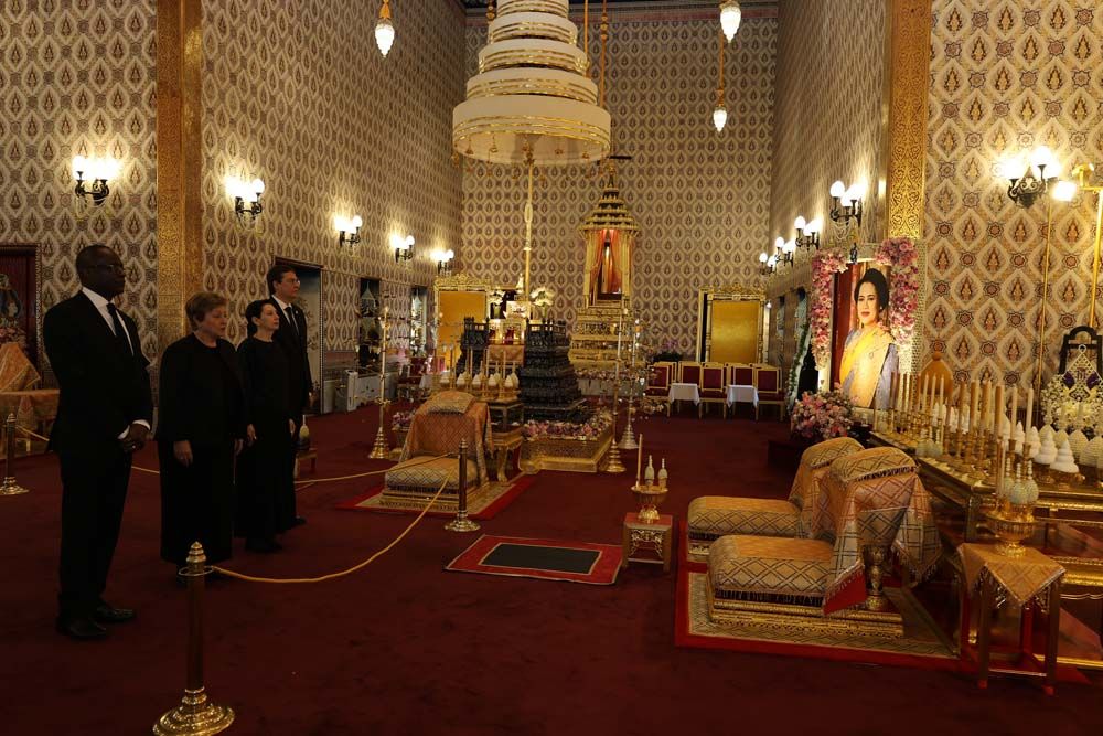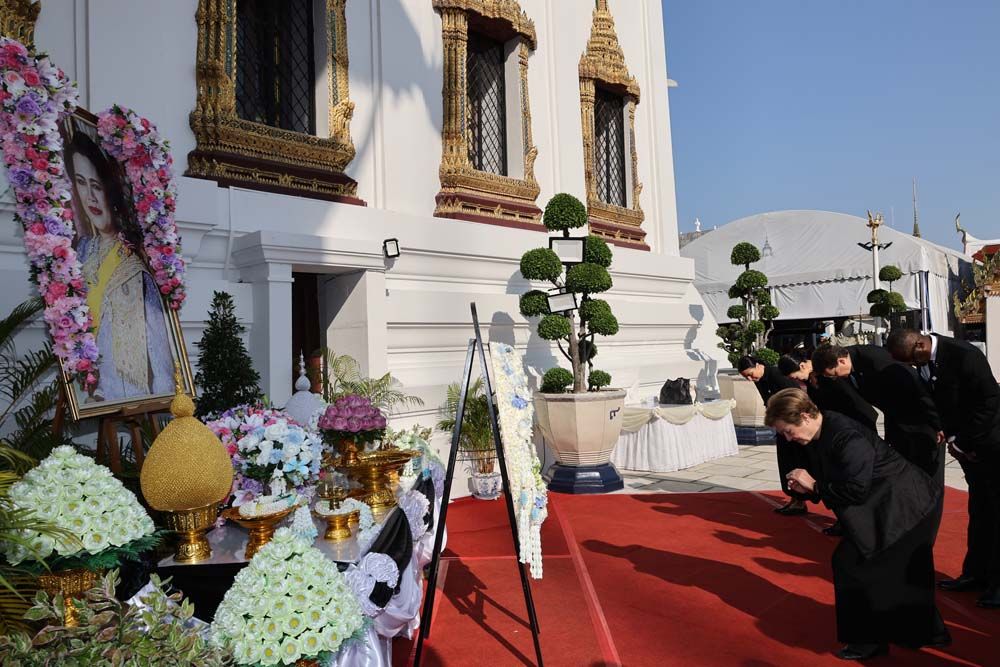 วันที่ 4 มีนาคม 2569 เวลา 08.30 น. คณะกองทุนการเงินระหว่างประเทศ (IMF) International Monetary Fund วางพวงมาลาและ ถวายความอาลัยพระบรมศพสมเด็จพระนางเจ้าสิริกิติ์ พระบรมราชินีนาถ พระบรมราชชนนีพันปีหลวง ณ พระที่นั่งดุสิตมหาปราสาท ในพระบรมมหาราชวัง