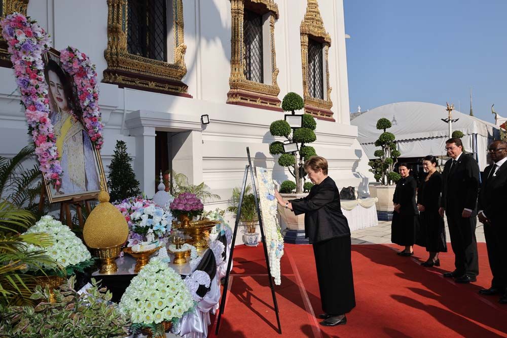คณะกองทุนการเงินระหว่างประเทศ (IMF) วางพวงมาลาและถวายความอาลัยพระบรมศพ “สมเด็จพระพันปีหลวง”