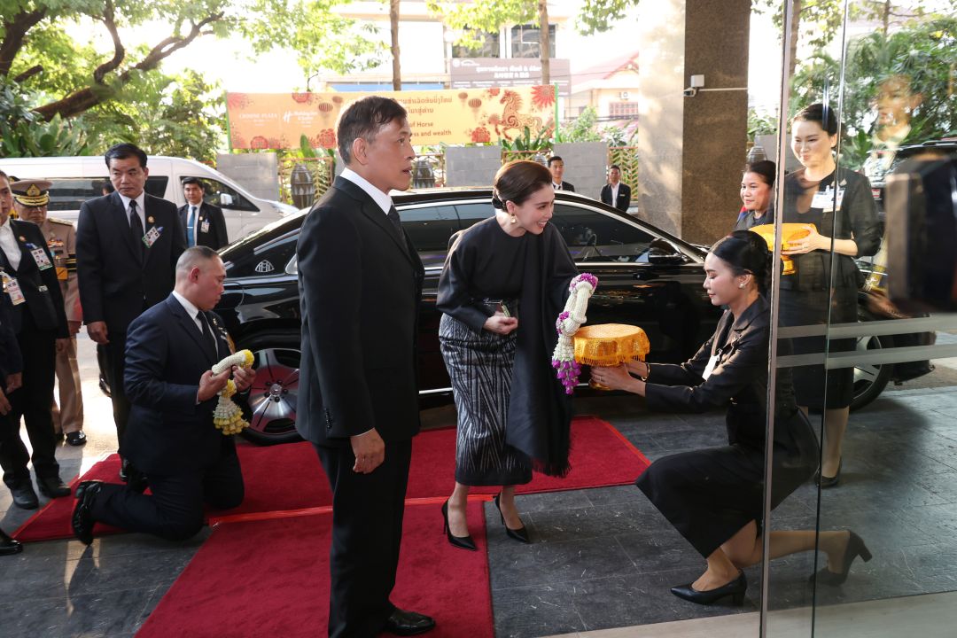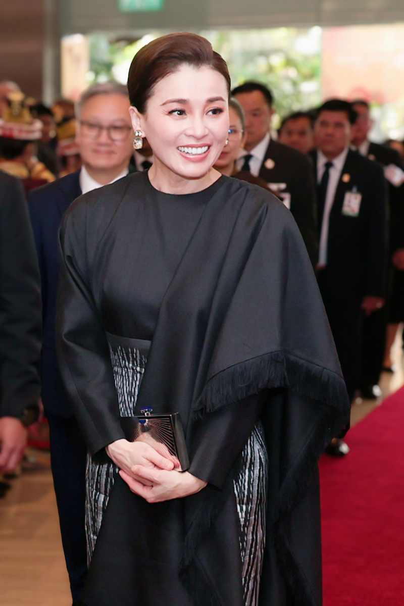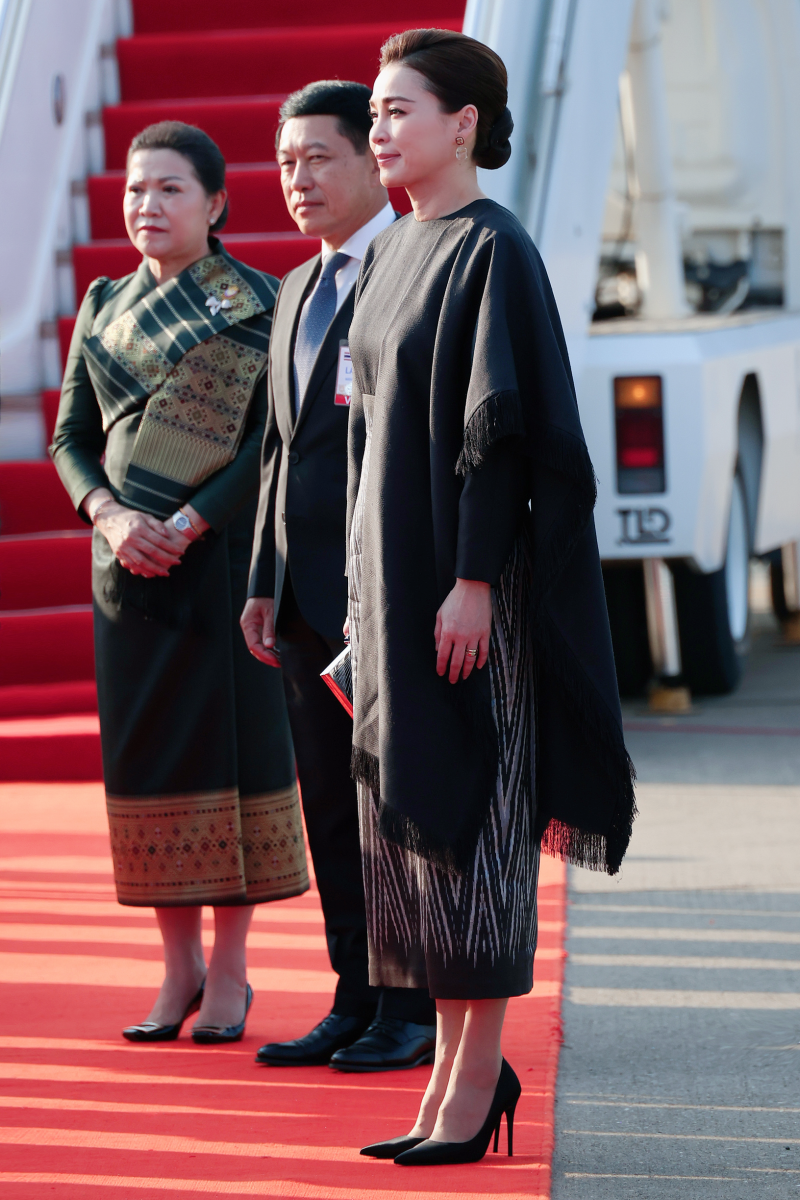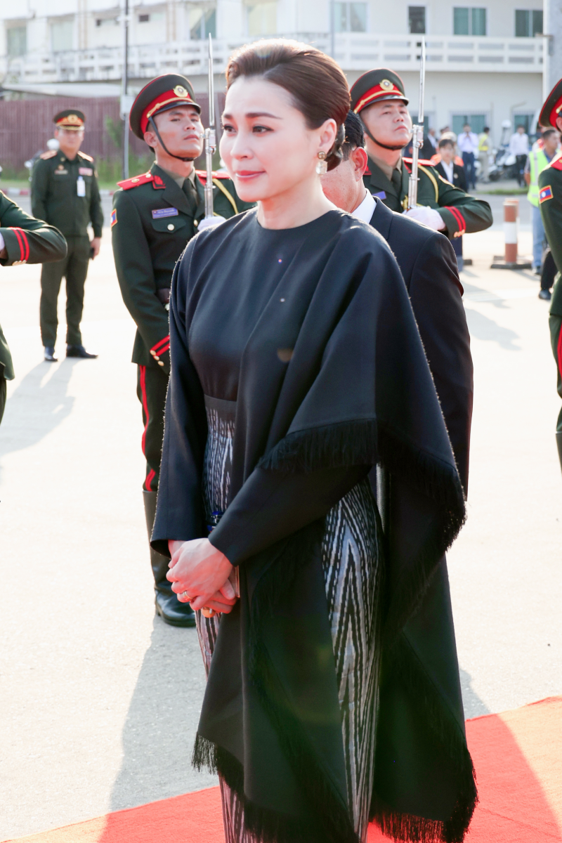 ฉลองพระองค์ของสมเด็จพระนางเจ้าสุทิดา พัชรสุธาพิมลลักษณ พระบรมราชินี ชุดที่ 1 เสด็จพระราชดำเนินถึงท่าอากาศยานนานาชาติวัตไต นครเวียงจันทน์