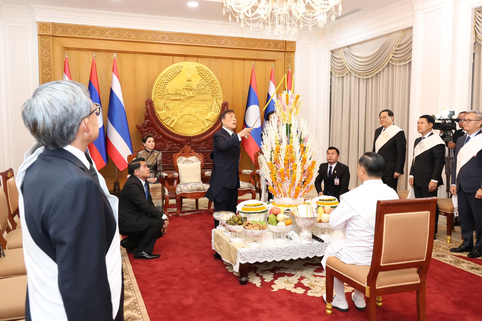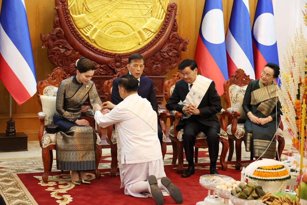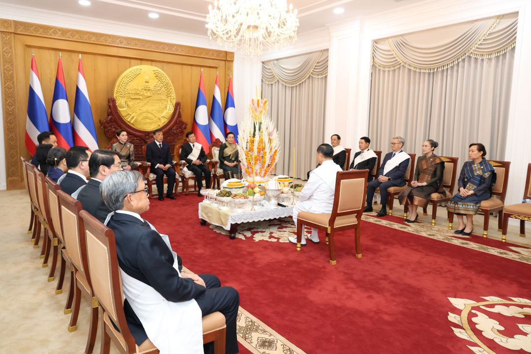 เมื่อวันที่ 17 มี.ค.2569 เวลา 18.38 น (เวลาท้องถิ่น) พระบาทสมเด็จพระเจ้าอยู่หัว และสมเด็จพระนางเจ้า ฯ พระบรมราชินี เสด็จพระราชดำเนินโดยรถยนต์พระที่นั่ง จากโรงแรมคราวน์พลาซ่า เวียงจันทน์ ไปในพิธีบายศรีทูลพระขวัญ ณ หอคำ(ทำเนียบประธานประเทศ) เมื่อเสด็จพระราชดำเนินถึงนายทองลุน ลีสุลิด ประธานประเทศแห่งสาธารณรัฐประชาธิปไตยประชาชนลาว และนางนาลี สีสุลิด ภริยา เฝ้าทูลละอองธุลีพระบาทรับเสด็จ จากนั้น เสด็จพระราชดำเนินพร้อมด้วยประธานประเทศ และภริยา ไปยังห้องพิธีทูลพระขวัญ พระราชทานพระบรมราชานุญาตให้ นายคำหมั้น จันทะวง หมอพรผู้ประกอบพิธีบายศรีทูลกระขวัญประกอบพิธี