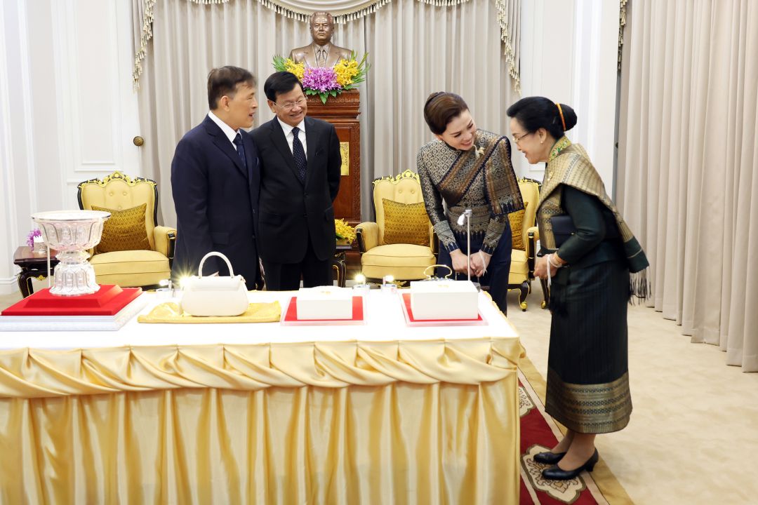 เสร็จแล้ว พระบาทสมเด็จพระเจ้าอยู่หัว และสมเด็จพระนางเจ้า ฯ พระบรมราชินี เสด็จพระราชดำเนินพร้อมด้วย ประธานประเทศ และภริยา ไปยังห้องถวายพระกระยาหารค่ำอย่างเป็นทางการ โดยมีแขกผู้มีเกียรติทั้งฝ่ายลาว และฝ่ายไทย เข้าร่วมในการถวายพระกระยาหารค่ำอย่างเป็นทางการ