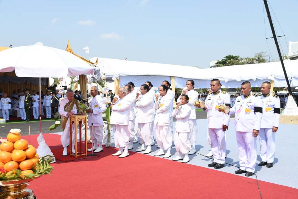 การนี้ ทรงจุดธูปเทียนเครื่องนมัสการบูชาพระรัตนตรัย ทรงศีล พระราชทานพระราชวโรกาสให้นายอนุทิน ชาญวีรกูล นายกรัฐมนตรี กราบบังคมทูลรายงาน แล้วเสด็จฯ ออกจากพลับพลาพิธี ไปยังมณฑลพิธีบวงสรวงทรงจุดเทียนทอง เทียนเงิน และธูป แล้วทรงปักธูปหางที่เครื่องบวงสรวง ทรงจุดธูปเทียนเครื่องทองน้อย
