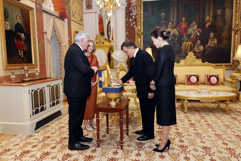 ในโอกาสนี้ นางซูซัน แครอล โรรัฟฟ์ (Mrs. Susan Carol Roraff) ภริยาเอกอัครราชทูต ฯ ร่วมเข้าเฝ้าทูลละอองธุลีพระบาทด้วย