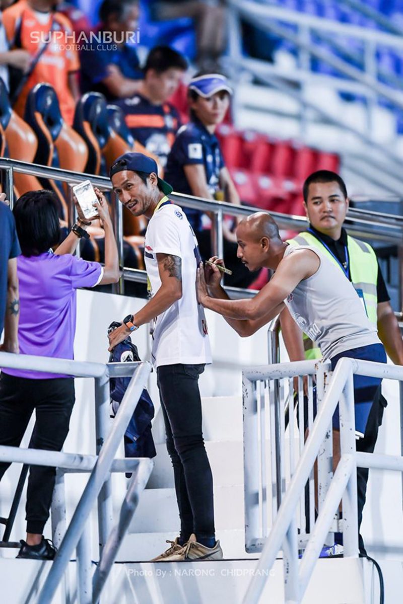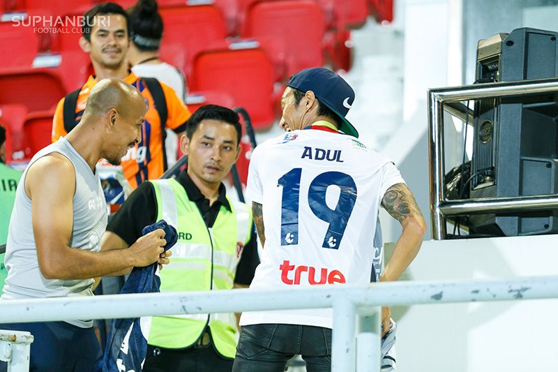 ซึ่ง "พี่ตูน" ได้โพสต์ภาพในอินสตาแกรมส่วนตัวว่า "ดีใจได้มาเชียร์และให้กำลังใจขอบสนามวันนี้ที่ 'สุพรรณฯ อีกครั้ง...และเป็นเกียรติที่ได้เจอกับนักกีฬาในดวงใจอีกท่านในชีวิต...ขอบพระคุณพี่ @l_adul19 ที่มอบเสื้อและเซ็นลายเซ็นให้ผมด้วยนะครับ รัก"