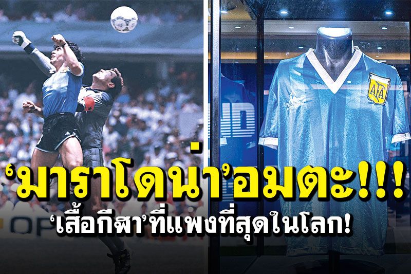 เสื้อแข่งของ “เสือเตี้ย” ดีเอโก้ มาราโดน่า ยอดดาวเตะคนดังของโลกผู้ล่วงลับ ขึ้นชั้นตำนานเป็นอุปกรณ์และสิ่งของที่เกี่ยวข้องกับกีฬาที่ราคาแพงที่สุดในโลก หลังจากเสื้อแข่งในนัดประวัติศาสตร์ของเขา ในการแข่งขันฟุตบอลโลก ปี 1986 ได้ถูกประมูลไปด้วยราคาสูงกว่า 7.1ล้านปอนด์