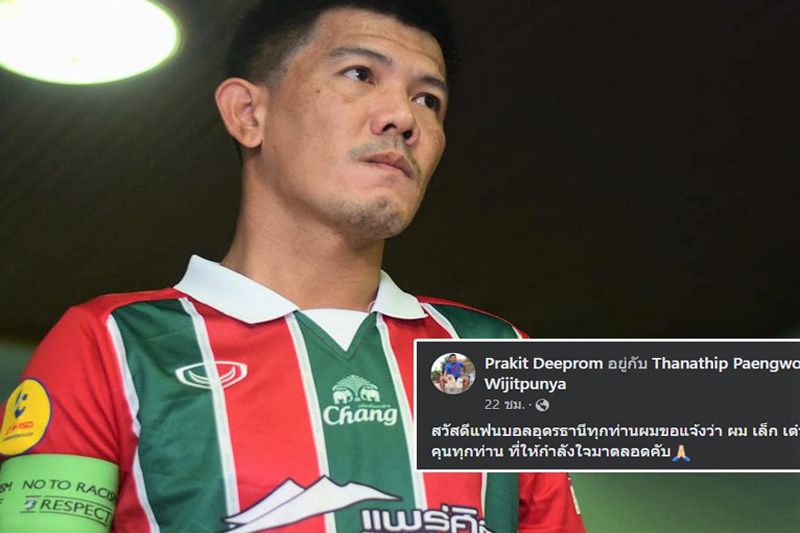 ประกิต ดีพร้อม อดีตกองกลางทัพ “ช้างศึก” โพสต์ประกาศได้เงินที่ติดค้างครบเรียบร้อยแล้ว หลังโดนอดีตต้นสังกัดเก่าคืออุดรธานีเอฟซี ยักษ์แสดค้างค่าเหนื่อย ประกิต ดีพร้อม นักเตะสโมสรแพร่ ยูไนเต็ดอาชาผยอง ทีมในไทยลีก 2 มีเรื่องให้พูดถึงบนโลกโซเชียลมาตลอดในช่วงหลายเดือนที่ผ่านมา ล่าสุด เจ้าตัวได้ประกาศผ่านทางหน้าเฟซบุ๊กส่วนตัวว่าได้เงินที่ติดค้างครบแล้ว พร้อมกับอดีตเพื่อนร่วมทีมอีก 2 คน ธนาธิป แพงวงษ์ และ ดนุสรณ์ วิจิตรปัญญาซึ่งหลังจากการเข้ามาของทีมงานผู้บริหารใหม่ ของทัพ “ยักษ์แสด” ที่นำทีมมาโดย “คุณอุ๊บ วิริยะ” และ Mr. Mark โดยทางด้าน ประกิต ดีพร้อม ได้โพสต์ข้อความที่มีใจความว่าสวัสดีแฟนบอลอุดรธานี เอฟซี ทุกท่าน ผมขอแจ้งว่า “ผม เล็ก เต๋า” ได้รับเงินครบเรียบร้อยแล้วครับ ขอบคุณทุกท่าน ที่ให้กำลังใจมาตลอดครับ