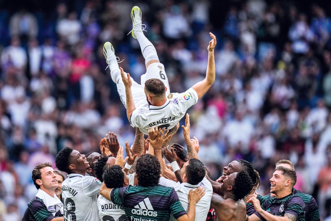 ส่วน คาริม เบนเซม่า อำลา เรอัล มาดริด ปิดฉากเส้นทางค้าแข้งกับทีม “ชุดขาว” ที่ยาวนานถึง 14 ปีโดยยิงจุดโทษสั่งลาในเกมกับ แอธ.บิลเบา ที่สนาม ซานติอาโก เบร์นาเบว ผลจบที่ 1-1 โดยที่ คาร์โล อันเชล็อตติ กุนซือทีม เรอัล มาดริด ยืนยันว่า ประหลาดใจอย่างมากที่ เบนเซม่า ประกาศอำลาสโมสรเนื่องจากเจ้าตัวไม่เคยปริบากเรื่องนี้มาก่อนเลยแม้แต่น้อย