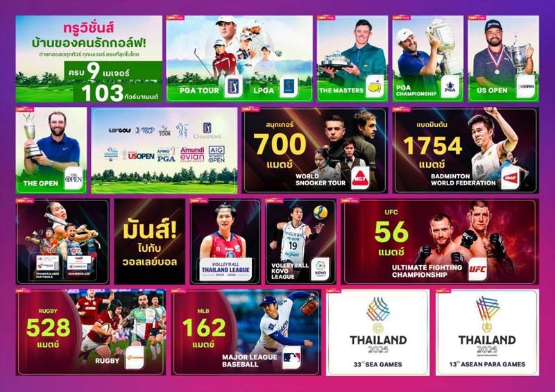 เต็มอิ่มให้คอบอลชาวไทย 9 ลีก 15 ถ้วย ชมสดได้กว่า 2,000 แมตช์ตลอดฤดูกาล อาทิ ฟุตบอล UEFA Champions League, UEFA Europa League, UEFA Conference League, La Liga และ Calcio Serie A เป็นต้น