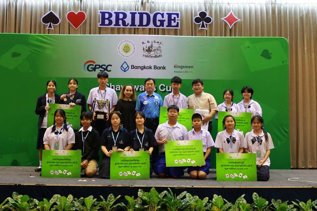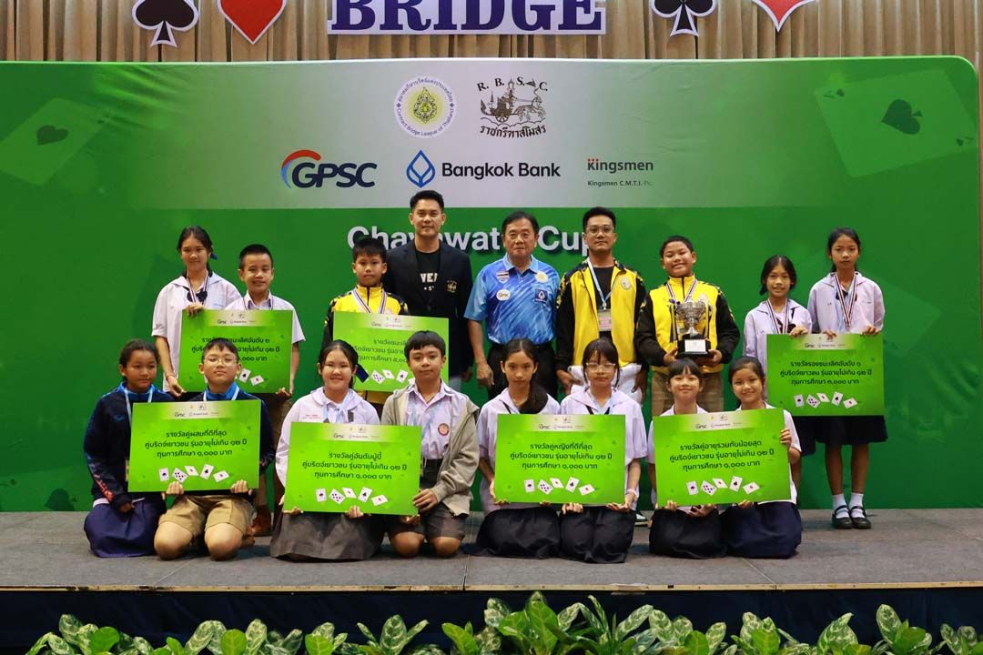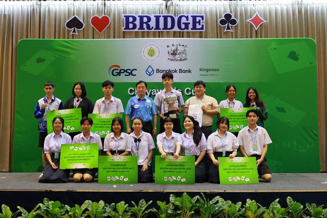 ‘อนุพงษ์ รักขะเสน’ควง‘ธนวัฒน์ หลักแหลม’จากโรงเรียนสังคมวิทยา จ.หนองคาย คว้าแชมป์ รุ่นอายุไม่เกิน 18 ปี การแข่งขันกีฬาบริดจ์ รายการ‘ชยวัฒน์ คัพ’ครั้งที่ 5