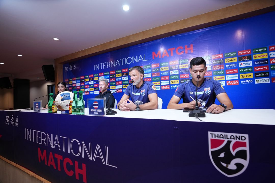การแถลงข่าวครั้งนี้นำโดย “แอนโธนี ฮัดสัน” หัวหน้าผู้ฝึกสอนฟุตบอลชายทีมชาติไทย พร้อมด้วย “สุภโชค สารชาติ" แนวรุกของทีม