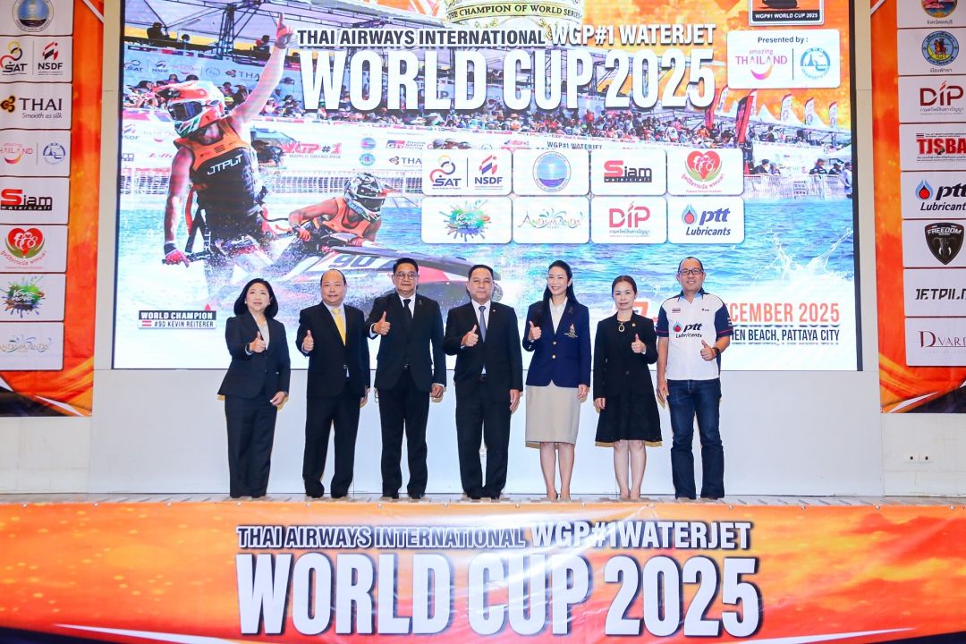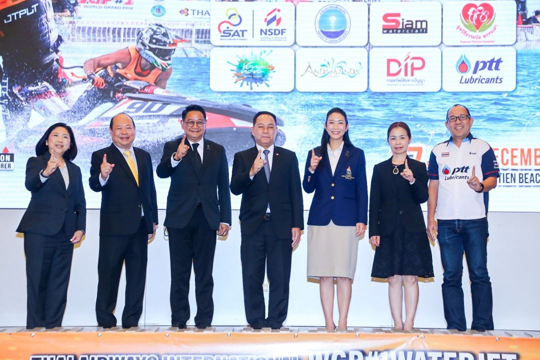 ด้าน พล.ต.อ.เดชณรงค์ สุทธิชาญบัญชา นายกสมาคมกีฬาเจ็ตสกีฯ กล่าวเสริมว่า องค์กรเจ็ตสกีโลก WGP#1 ตั้งเป้าหมาย “ทำคอนเทนต์กีฬาโลก โดยฝีมือคนไทย” สิ่งนี้เป็นการเปลี่ยนแปลงทั้งระบบ แนวคิด วิธีการทำงาน และจุดมุ่งหมาย ด้วยการใช้กีฬา บวก IP (Intellectual Property) ทรัพย์สินทางปัญญา การพาณิชย์ การท่องเที่ยว เปลี่ยนภาพทัวร์นาเม้นท์เจ็ตสกีไทย ที่น่ารักแบบปลานีโม่เป็นปลาฉลาม ขึ้นนำอยู่จุดสูงสุดของห่วงโซ่อุตสาหกรรมกีฬาเจ็ตสกี มูลค่าตลาดกว่า 9.5 หมื่นล้านบาทต่อปี ช่วยพัฒนาเงินหมุนเวียนตลาดเจ็ตสกีไทยกว่า 4.2 พันล้านบาทต่อปี และเมื่อเป็นคอนเทนต์อันดับที่ 1 ของโลกในขณะนี้ เชื่อมั่นว่า WGP#1 พร้อมขยายตัวเป็นมหกรรมกีฬาโลกที่ยิ่งใหญ่ไปปักธงชาติไทย 10-20 สนามทั่วโลกได้ อีกทั้งสามารถพัฒนาคอนเทนต์ที่มีผู้ชมทั่วโลกกว่า 400 ล้านคน ถือว่าเป็นเรื่องใหม่ และเป็นความสำเร็จครั้งใหญ่ของวงการกีฬาไทย
