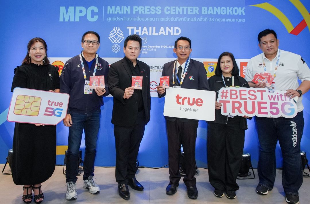 เมื่อวันที่ 8 ธันวาคม 2568 ณ ห้องแถลงข่าว อาคารศูนย์ปฏิบัติการ NBT สถานีวิทยุโทรทัศน์แห่งประเทศไทย กรมประชาสัมพันธ์ ถนนวิภาวดีรังสิต บริษัท ทรู คอร์ปอเรชั่น จำกัด (มหาชน) ในฐานะผู้สนับสนุนด้านเทคโนโลยีการสื่อสารอย่างเป็นทางการของมหกรรมกีฬาซีเกมส์ ครั้งที่ 33 ได้ทำการมอบซิม True5G ให้กับสื่อมวลชนไทย เพื่อใช้ในงานรายงานข่าวสารและความเคลื่อนไหวของการแข่งขันกีฬาซีเกมส์ ครั้งที่ 33 ที่ประเทศไทยเป็นเจ้าภาพระหว่างวันที่ 9-20 ธันวาคม 2568 พร้อมทั้ง “Power Up the Press" นอกจากมอบการซิม 5G ยังเสริมแกร่งการสื่อสารโดยติดตั้งอินเทอร์เน็ตไฟเบอร์ความเร็วสูงและ WiFi จากทรูออนไลน์ ใน Press Center ทุกจังหวัดที่จัดการแข่งขัน ให้สื่อมวลชนจากนานาประเทศได้รายงานความเคลื่อนไหวฉับไวและแม่นยำตลอดการแข่งขัน