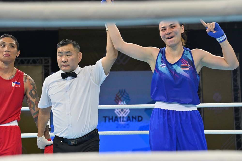 รุ่นฟลายเวท 50 กก.หญิง จุฑามาศ รักสัตย์ วัย 32 ปี ชนะ เหงียน ถิ ง็อก ตรัน จากเวียดนาม 5-0 ไปตัดเชือกกับ อิสราเอลลาห์ อาเธน่า โบนิต้า ซาวาโฮ จากอินโดนีเซีย