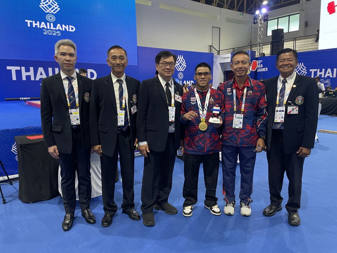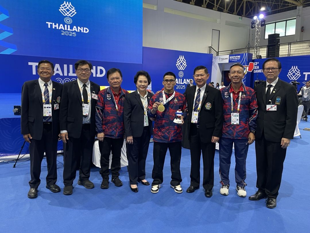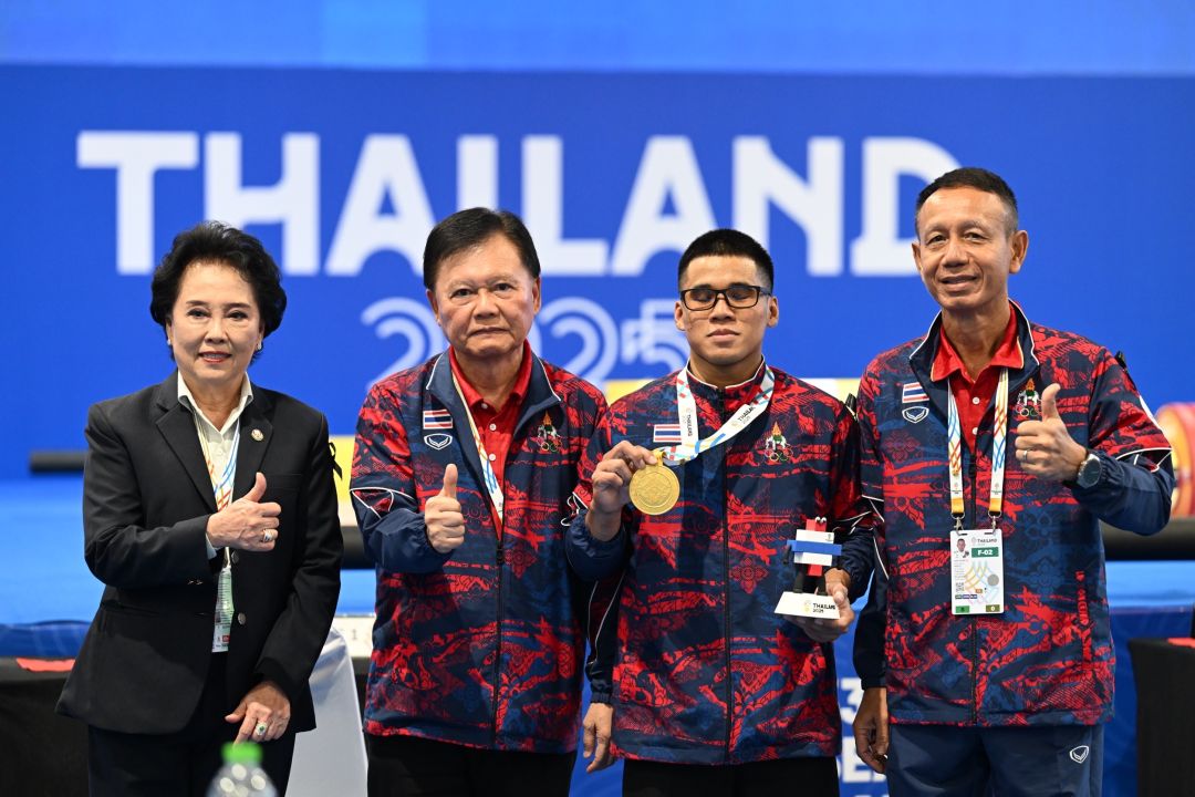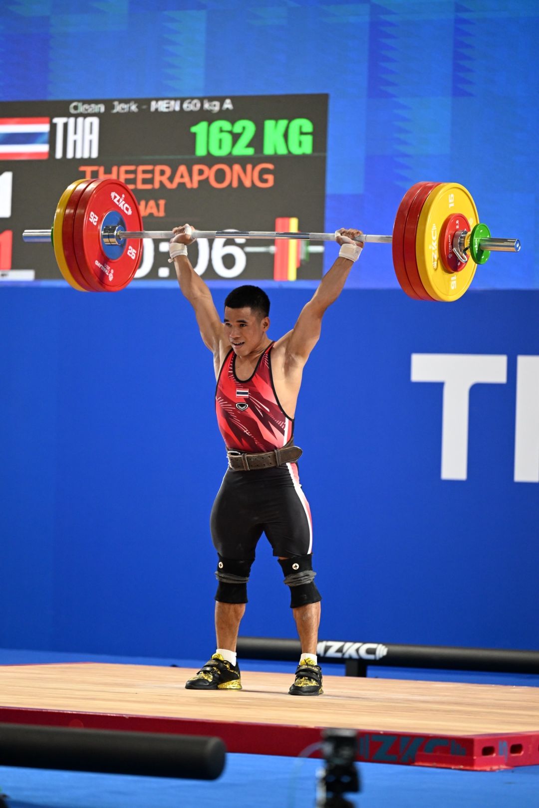 การแข่งขันกีฬายกน้ำหนักชาย รุ่น 60 กิโลกรัม ชาย แข่งขันรวม 6 คน ทีมไทยส่ง “ฟ่าง” จ่าตรี ธีรพงศ์ ศิลาชัย เจ้าของเหรียญเงินโอลิมปิกเกมส์ “ปารีส 2024“ ลงชิงชัย โดยท่าสแนทช์ ยกผ่าน 3 ครั้งรวด 126 กิโลกรัม, 129 กิโลกรัม, 131 กิโลกรัม ตามลำดับ/ ท่าคลีนแอนด์เจิร์ก ธีรพงศ์ ออกมายกด้วยความมั่นใจ ท่ามกลางเสียงเชียร์ของแฟนกีฬาชาวไทย
