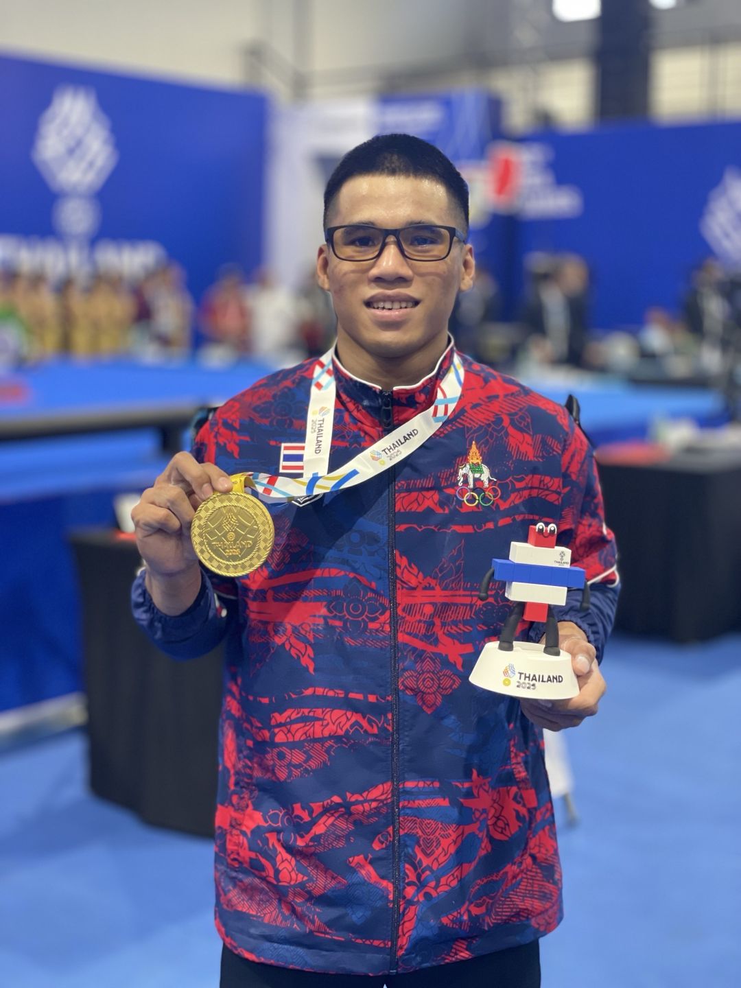 ครั้งแรกยกผ่านที่ 162 กิโลกรัม, ครั้งที่ 2 ยกผ่านที่ 165 กิโลกรัม จากนั้นครั้งที่ 3 เรียกเหล็ก 173 กิโลกรัม ยกผ่านสำเร็จ พร้อมทุบสถิติโลกที่วางมาตรฐานไว้ 172 กิโลกรัม ไปแบบสะใจกองเชียร์ รวมทั้งขยับน้ำหนักรวมไปอยู่ที่ 304 กิโลกรัม ผงาดคว้าเหรียญทองแรกให้กับทัพจอมพลังไทย