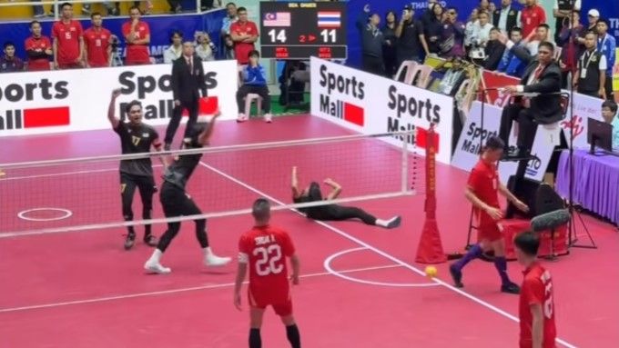 การแข่งขันกีฬาเซปักตะกร้อ ประเภททีมชุดชาย รอบชิงชนะเลิศ ในศึกซีเกมส์ 2025 ระหว่าง ทัพ "ลูกหวาย" ตะกร้อหนุ่มทีมชาติไทย ลงดวลกับ คู่รักคู่แค้น “เสือเหลือง” ทีมชาติมาเลเซีย ที่ ยิมเนเซียม 4,000 ที่นั่ง ศูนย์กีฬาเทศบาลนครนครปฐม