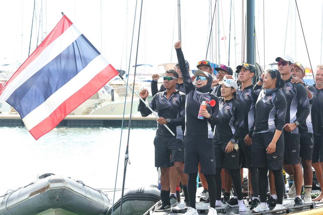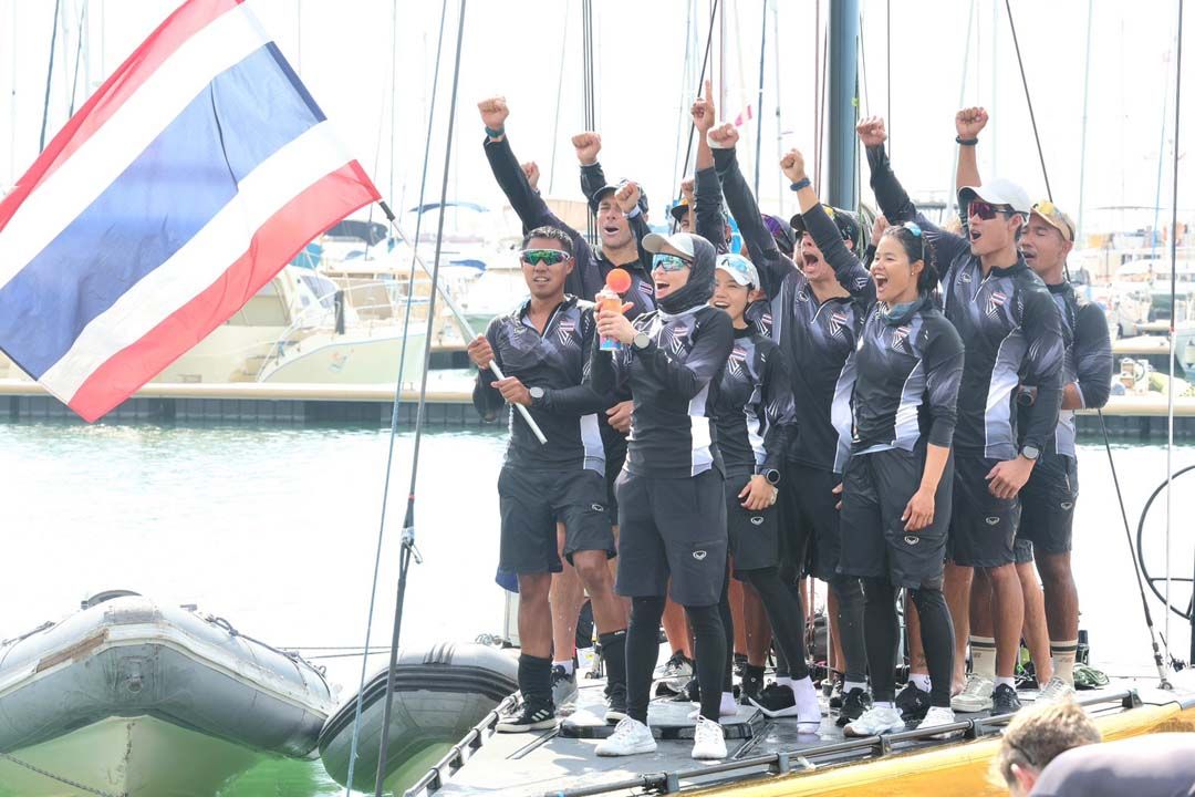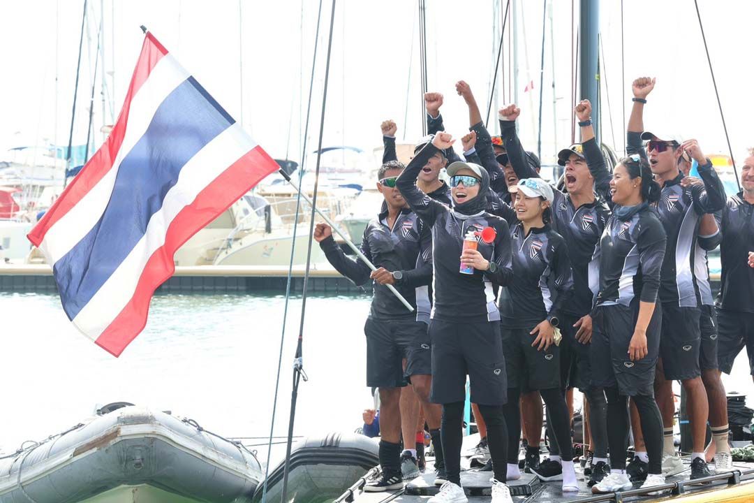 โดยวันนี้ทีมชาติไทยก็ยังโชว์พลังความสามัคคี จนสามารถเข้าเส้นชัยเรซที่ 8 เป็นอันดับที่ 1 ด้วยเวลา 41.31 น. ทีมอันดับสองคือ มาเลเซีย และอันดับที่ 3 คือ ประเทศเมียมา ซึ่งรวมผลการแข่งขันรวมทั้ง 8 เรซ ทำให้นักกีฬาเรือใบทีมชาติไทยคว้าเหรียญทองประวัติศาสตร์มาครองได้สำเร็จ