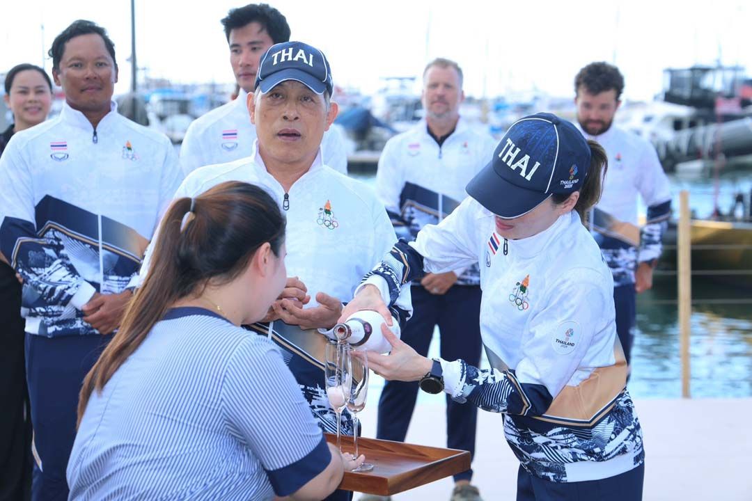 เมื่อเสร็จสิ้นการแข่งขัน สมเด็จพระนางเจ้าฯ พระบรมราชินี เสด็จพระราชดำเนินโดยเรือใบ (SSL 47) ไปยังท่าเรือโอเชี่ยน มารีน่า ยอช์ท คลับ พัทยา ในโอกาสนี้ พระบาทสมเด็จพระเจ้าอยู่หัว ฉายพระบรมฉายาลักษณ์ร่วมกับสมเด็จพระนางเจ้าฯ พระบรมราชินี นักกีฬาเรือใบทีมชาติไทย และคณะทีมเรือใบทีมชาติไทย และพระราชทานช่อดอกไม้แสดงความยินดีแก่สมเด็จพระนางเจ้าฯ พระบรมราชินี และนักกีฬาเรือใบทีมชาติไทย พลอากาศเอก สถิตย์พงษ์ สุขวิมล ราชเลขานุการในพระองค์พระบาทสมเด็จพระเจ้าอยู่หัว เป็นผู้แทนหน่วยราชการในพระองค์ ทูลเกล้าทูลกระหม่อมถวายช่อดอกไม้แสดงความยินดีแด่สมเด็จพระนางเจ้าฯ พระบรมราชินี พระบาทสมเด็จพระเจ้าอยู่หัว และสมเด็จพระนางเจ้า ฯ พระบรมราชินี ทรงเปิดแชมเปญ (Champagne) จากนั้น ประทับรถไฟฟ้าพระที่นั่ง เสด็จพระราชดำเนินกลับโรงแรมโอเชี่ยน มารีน่า พัทยา