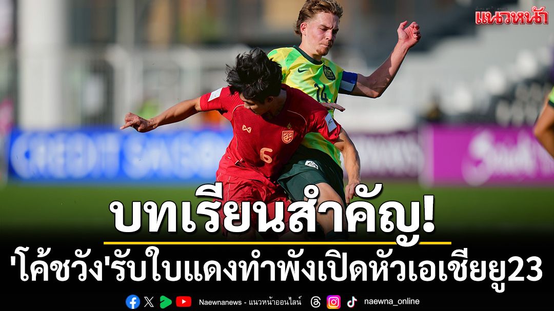 "โค้ชวัง" ธวัชชัย ดำรงอ่องตระกูล หัวหน้าผู้ฝึกสอนทีมชาติไทย รุ่นอายุไม่เกิน 23 ปี รับเป็นบทเรียนราคาแพงของ พลเอก มณีกร ที่เสียบหนักใส่แข้ง ออสเตรเลีย ก่อนจะโดนใบแดงตั้งแต่ต้นเกม พร้อมกับพ่ายทัพ "จิงโจ้มหาภัย" ไป 1-2 ในเกมเปิดหัวบอล ชิงแชมป์เอเชีย ยู23 รอบสุดท้าย รอบแบ่งกลุ่ม นัดแรก ที่ซาอุดีอาระเบีย