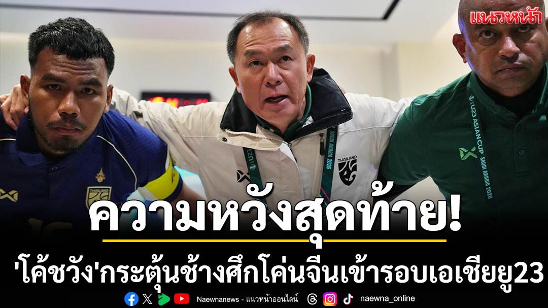"โค้ชวัง" ธวัชชัย ดำรงอ่องตระกูล กุนซือทีมชาติไทย รุ่นอายุไม่เกิน 23 ปี ตั้งเป้าพลิกนรก โค่นจีน เพื่อเข้ารอบ 8 ทีม ฟุตบอลชิงแชมป์เอเชีย รุ่นอายุไม่เกิน 23 ปี 2026 ให้ได้