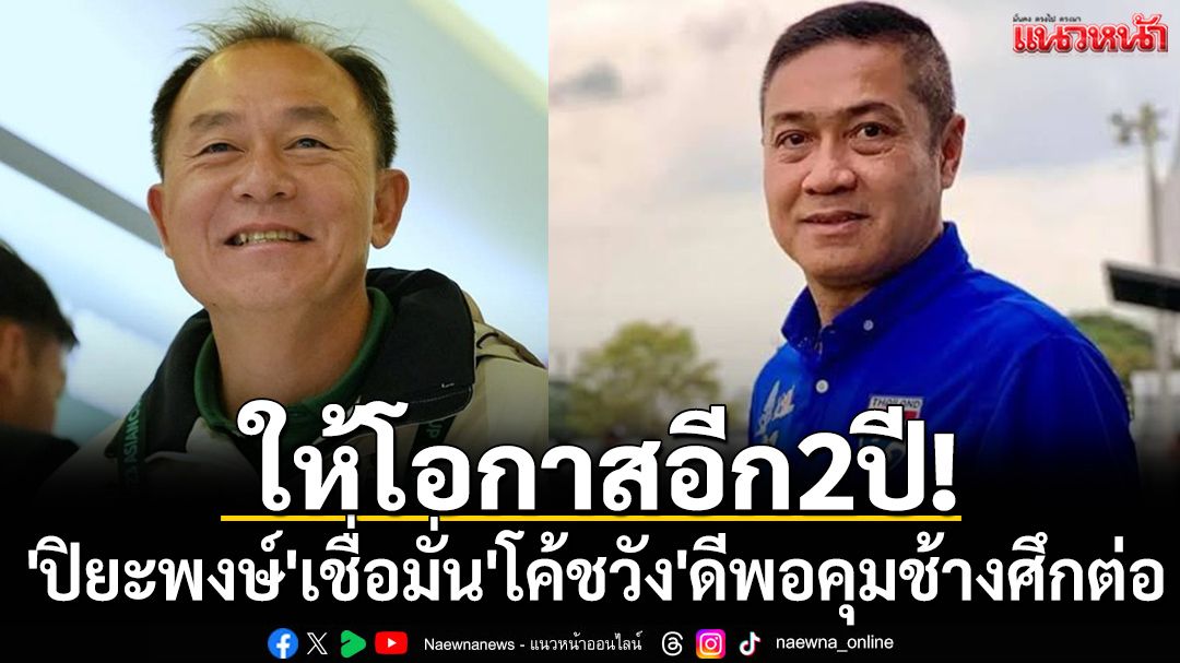 ล่าสุด "เดอะตุ๊ก” ปิยะพงษ์ ผิวอ่อน อดีตตำนานศูนย์หน้าทีมชาติไทย ซึ่งปัจจุบันดำรงตำแหน่งโฆษกและสภากรรมการสมาคมกีฬาฟุตบอลแห่งประเทศไทยฯ เปิดเผยว่าเตรียมพิจาณาให้โอกาส โค้ชวัง ต่อไปอีก 1-2 ปี ชี้มองว่าฟอร์มของทีมยังน่าประทับใจแม้ขาดนักเตะตัวหลักไปเยอะ