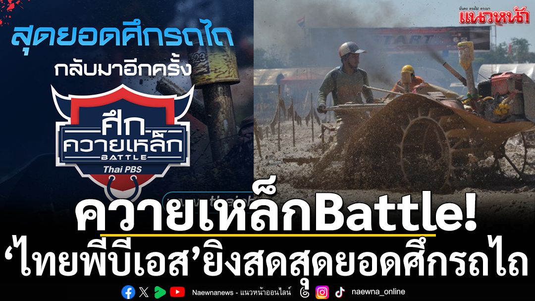 ศึกควายเหล็ก Battle 2026 ทุกวันอาทิตย์ เวลา 14.05 – 16.00 น. ตั้งแต่ 15 กุมภาพันธ์ – 15 มีนาคม 2569 ทางไทยพีบีเอส กดหมายเลข 3 และทุกช่องทางออนไลน์ ติดตามโปรแกรมถ่ายทอดสด และดูย้อนหลังได้อีกครั้งทาง www.thaipbs.or.th/Battle