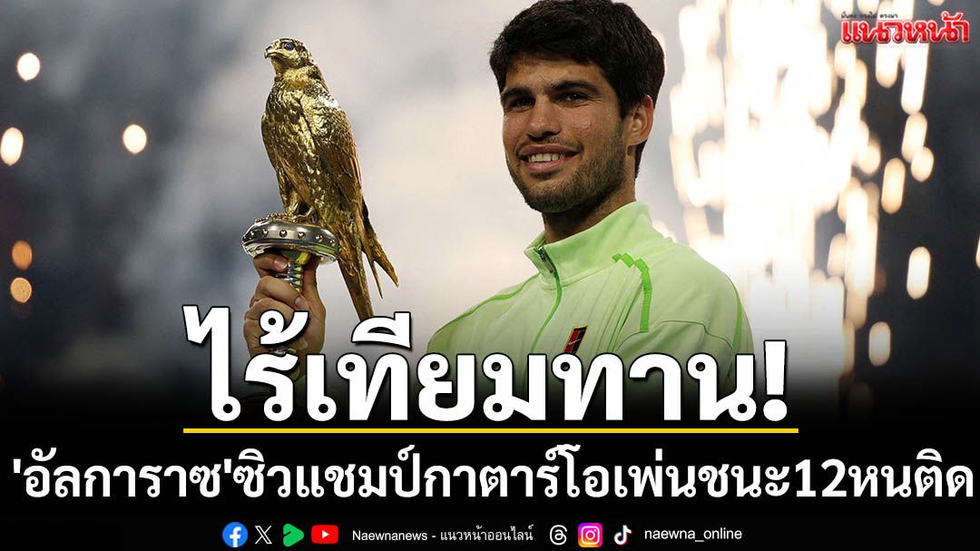 คาร์ลอส อัลการาซ นักหวดชาวสเปน ยังโชว์ฟอร์มสมราคามือ 1 โลก เมื่อเอาชนะ อาร์เธอร์ ฟิลส์ ขาดลอย 2 เซตรวด คว้าแชมป์เทนนิส กาตาร์ เอ็กซอนโมบิล โอเพ่น 2026 ที่กรุงโดฮา ประเทศกาตาร์ ไปครองอย่างยิ่งใหญ่