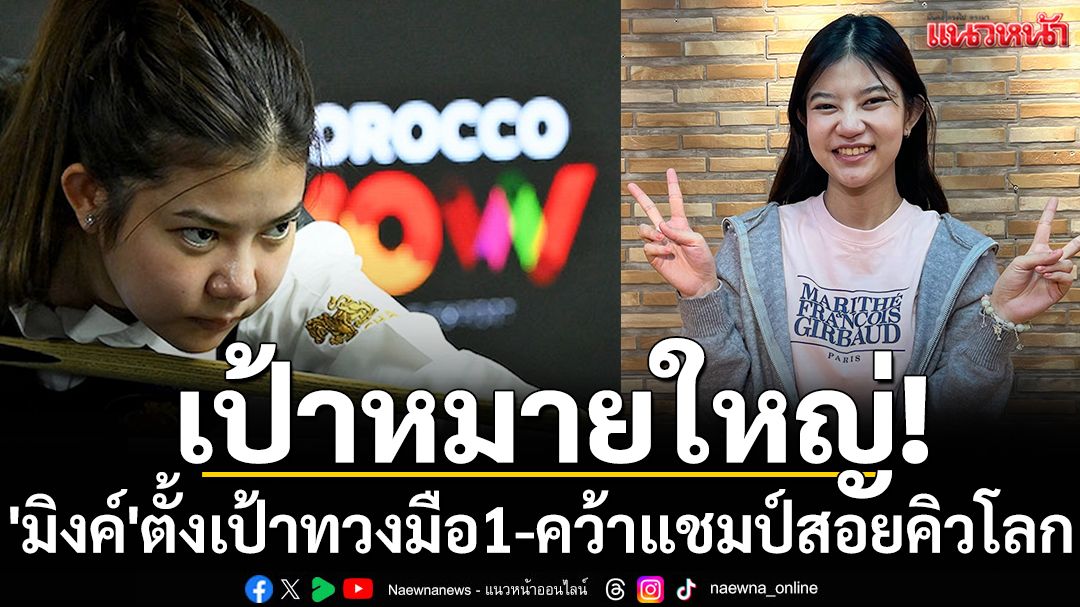 "มิ้งค์ สระบุรี” ณัชชารัตน์ วงศ์หฤทัย นักสนุกเกอร์หญิงชาวไทย ตั้งเป้าทวงบัลลังก์มือ 1 โลก กลับคืนมาให้ได้ในการแข่งขัน Landywood British Women's Open 2026 ระหว่างวันที่ 27-29 มี.ค.นี้