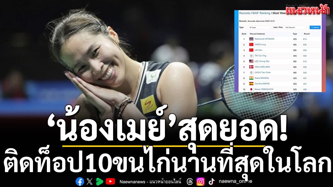 “เมย์” รัชนก อินทนนท์ นักแบดมินตันสาวขวัญใจชาวไทย มือ 7 ของโลก สร้างสถิติกลายเป็นนักขนไก่ที่ติดท็อป 10 นานที่สุดในโลก