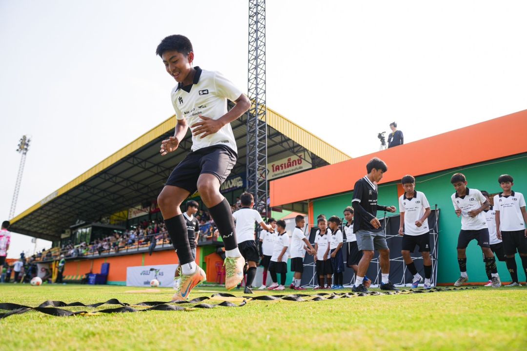 โดยในการฝึกซ้อมภาคปฏิบัติ น้องๆ เยาวชนจะได้เรียนรู้ทักษะผ่าน 5 ฐานการฝึกซ้อมสุดเข้มข้น ได้แก่ การเลี้ยงบอล : ฝึกควบคุมบอล เลี้ยงซิกแซก และการใช้ความเร็ว, การส่งและรับบอล : พัฒนาความแม่นยำและจังหวะสัมผัสบอลแรก , การยิงประตู : เพิ่มพลัง ความแม่นยำ และความมั่นใจในการจบสกอร์, ความคล่องตัว : สเต็ปเท้า บันไดลิง สร้างความสมดุลให้ร่างกาย, การควบคุมบอล : สร้างความคุ้นเคยกับลูกฟุตบอลในพื้นที่แคบ เพื่อเป็นก้าวสำคัญในการจุดประกายความฝัน "จากสนามหน้าบ้าน สู่มาตรฐานระดับสากล" ให้กับเยาวชนไทยอย่างแท้จริง