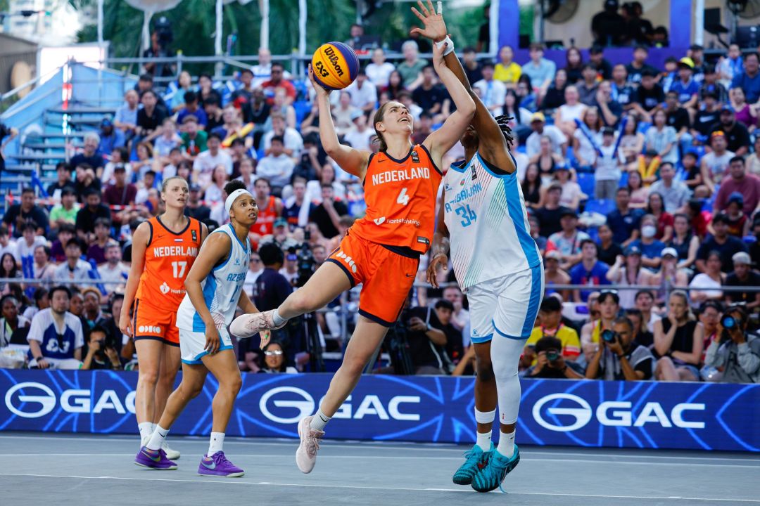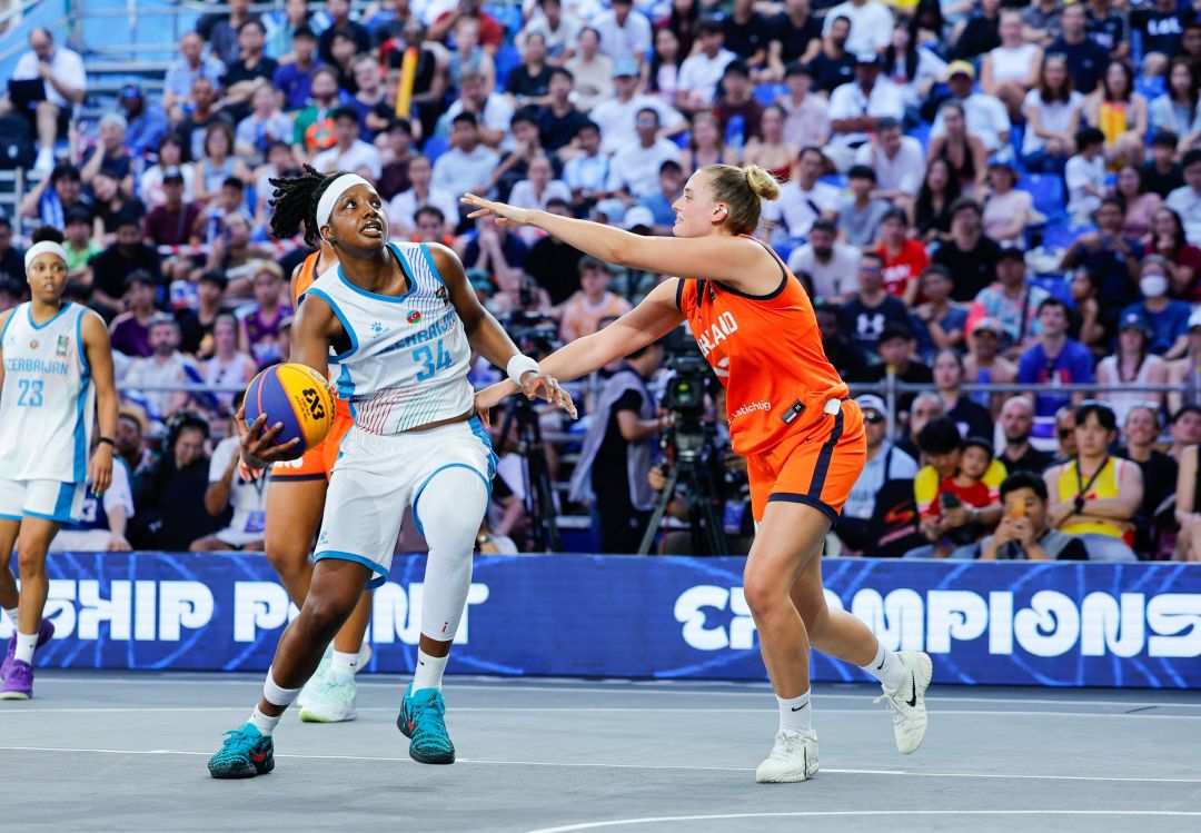 เปิดเกมทั้งสองทีมเล่นกันอย่างรัดกุม ผลัดกันทำคะแนนอย่างสูสี ก่อนที่สาวเนเธอแลนด์จะอาศัยทีมเวิร์คและความแม่นยำของ Driessen ที่ชู้ตสองแต้มได้อย่างเฉียบขาด ขึ้นนำในช่วง 5 นาทีแรก 15-8 หลังจากนั้นแม้อาเซอร์ไบจานจะพยายามเร่งเกมบุกอย่างหนัก แต่ไม่สามารถเจาะแนวป้องกันของเนเธอแลนด์ได้ ทำให้ทีมจากแดนกังหันลมเอาชนะไป