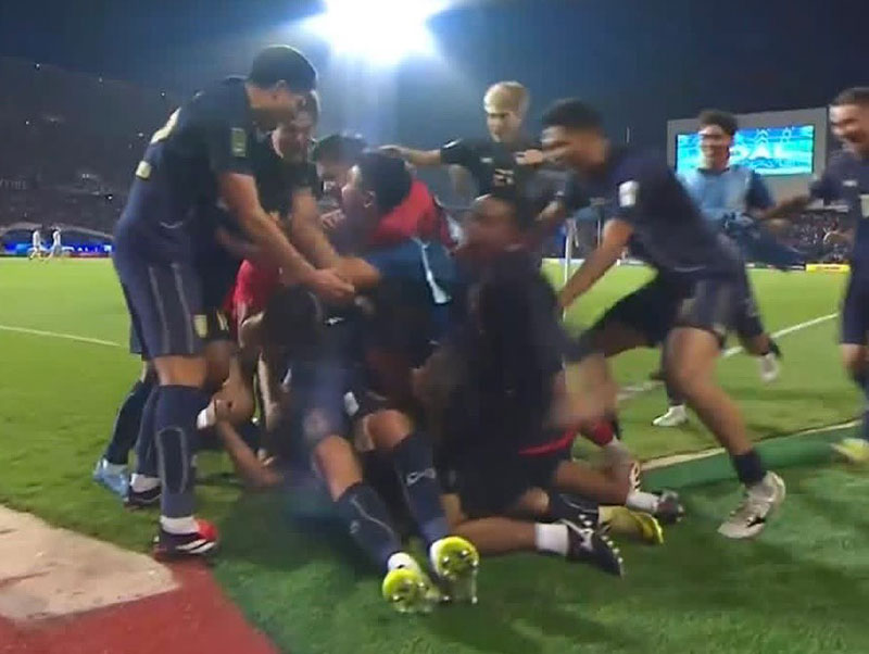 Goal!!!!!!!!!!!!! ช่วงท้ายเกม ไทย ที่พยายามอย่างหนัก มาได้ประตูชัย 2-1 จนได้ จากลูกเตะมุม และเป็น ธีราทร เปิดเข้ามาในกรอบเขตโทษ มานูเอล ทอมเบียร์ ขึ้นโขกเข้าไปไม่มีเหลือ