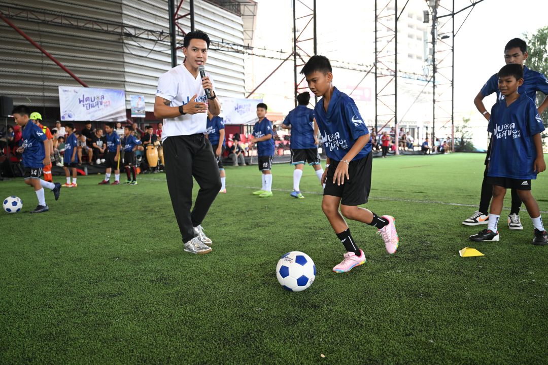 ไฮไลต์ของ ‘ฟุตบอลปันสุขฯ ซีซัน 2’ ซึ่งเป็นการต่อยอดการฝึกทักษะด้านกีฬาฟุตบอลให้เข้มข้นมากขึ้นผ่านการแข่งขันแบบ 7 ต่อ 7 ระหว่างเยาวชนจากชุมชนแต่ละพื้นที่ เพื่อกระตุ้นด้านความสามัคคี การช่วยเหลือซึ่งกันและกัน โดยได้อินฟลูเอนเซอร์สายสปอร์ตอย่าง ‘แม็ก โยนเหรียญ’ ณัฐพร ศรีมา และ ‘บาจโจ้’ ภาณุพงศ์ ใจคำ มาร่วมมอบรอยยิ้มพร้อมสร้างความสุขให้กับเยาวชนและชุมชนในงานนี้ด้วย